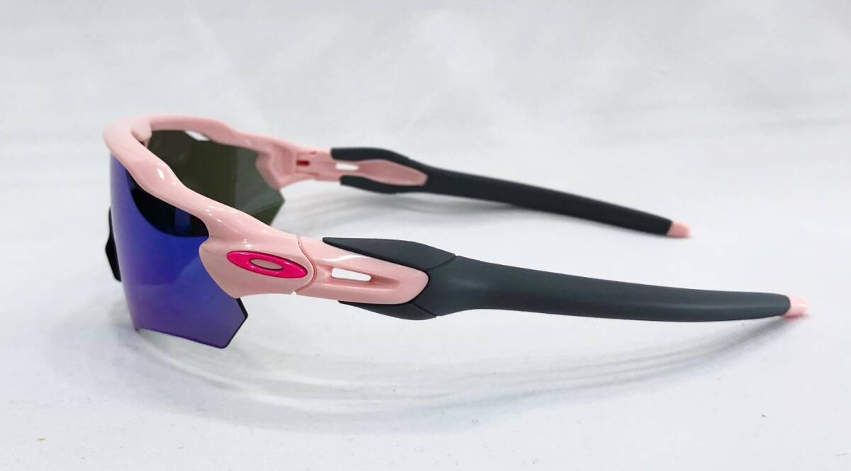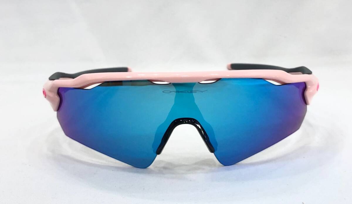 フレーム: Pink Milkshake / アイコン: Neon Pink / ソック: Slate / レンズ: Prizm Sapphire Polarized(偏光)