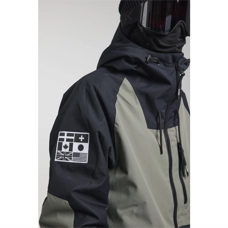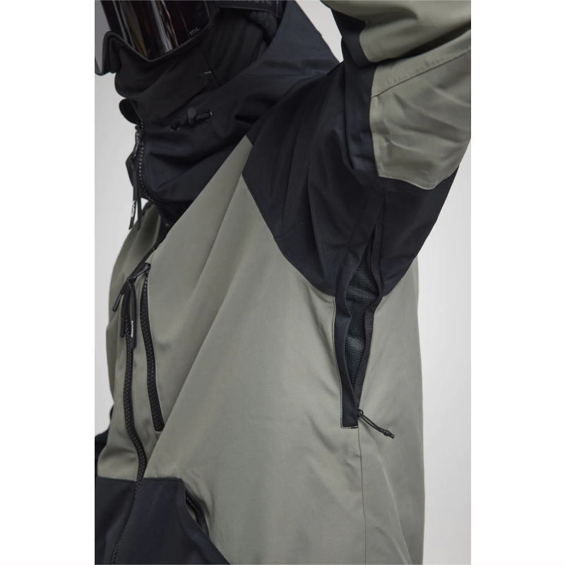 ・耐水圧:10,000mm ・透湿性:記載なし ・中綿:記載なし ・生地表面に撥水加工仕上げ ・シームテープ加工 ・ベルクロストラップで調節可能な袖口 ・ドローコードで調節可能なフード ・立体裁断された肘 ・ジップ付きハンドポケット ・ジップのチェストポケット ・Fit:Regular ・ウェストのパウダーガード:なし ・手首部分のカフ:あり ・脇の下のベンチレーション:あり ・パスケース:なし ・生地の厚さ:ふつう |