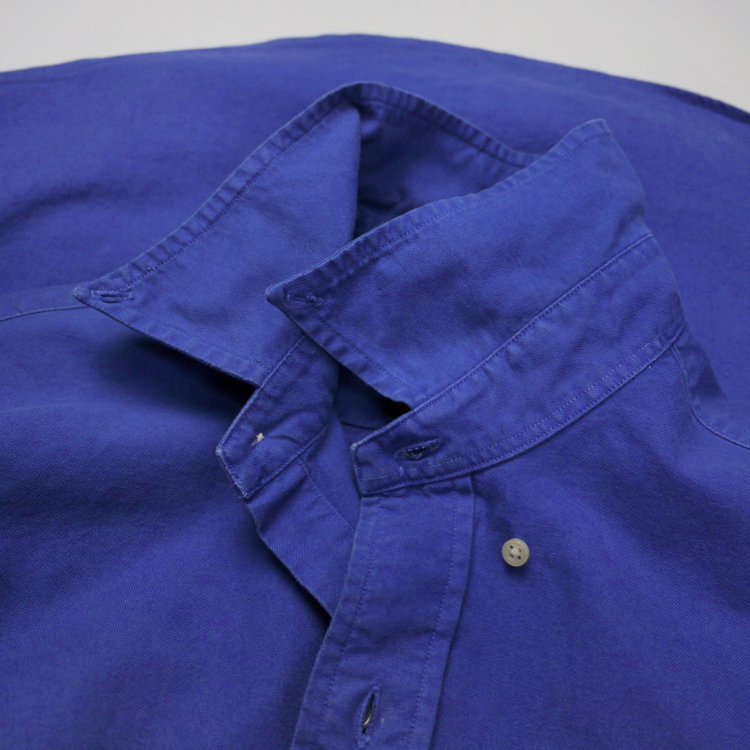 ■ブランド 90s、RALPH LAUREN、CUSTOM FIT ■カラー 青紫色/ブルーパープル系 ■素材 100%COTTON ■詳細 アメリカで購入したラルフローレンのボタンダウンシャツです。 90年代ごろの旧タグでポニー刺繍入りになります。中々目にすることのないレアカラーです!! 生地はツイル系?コットン、シルエットはスッキリとした着易いカスタムフィットです。 近年人気のオールドラルフ、オールコットンのタイプですのでイイ感じに雰囲気があります。 ■状態 多少のフェード、アタリ、スレ、特に目立ちませんがカドやフチなど所々にミリ単位の摩耗あり。 着用に支障のあるダメージはなく良好です。 ■サイズ 表記 S (着用感M相当 着丈&袖丈長めの作りです *実寸参考下さい) 前着丈 77cm 後着丈 79cm 肩幅 45cm 身幅 53cm 胴幅 49cm 裄丈 84cm 脇袖丈 54cm 肩袖丈 65cm ■注意事項 状態は細かく確認しておりますが、傷や汚れの見落とし、実寸誤差、色味差異など生じる場合がございます。 不明な点がありましたら入札前にご質問下さい。 商品にあわせて洗濯やクリーニングメンテナンスを施しておりますが、ビンテージやアンティークなど中古品になりますので特性のご理解をお願いします。 |