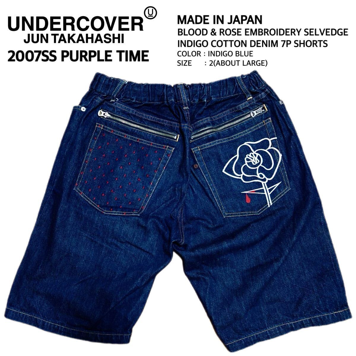 こちらは、『超稀少 2007SS UNDER COVER アンダーカバー 日本製 PURPLE パープル期 血とバラ刺繍インディゴデニム7Pイージーハーフパンツです。