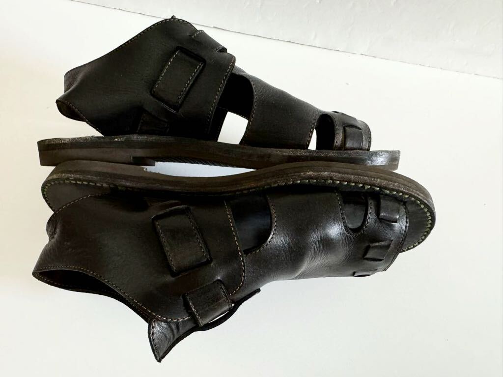 sos-sous size8 シュス belted shoes ベルテッドシューズ レザーサンダル ブラックブラウン (KI)
