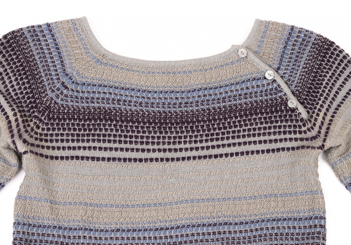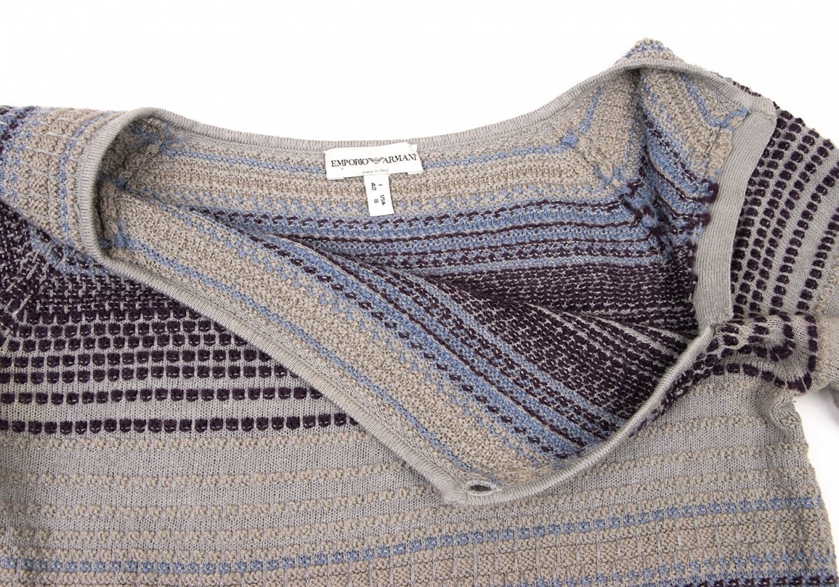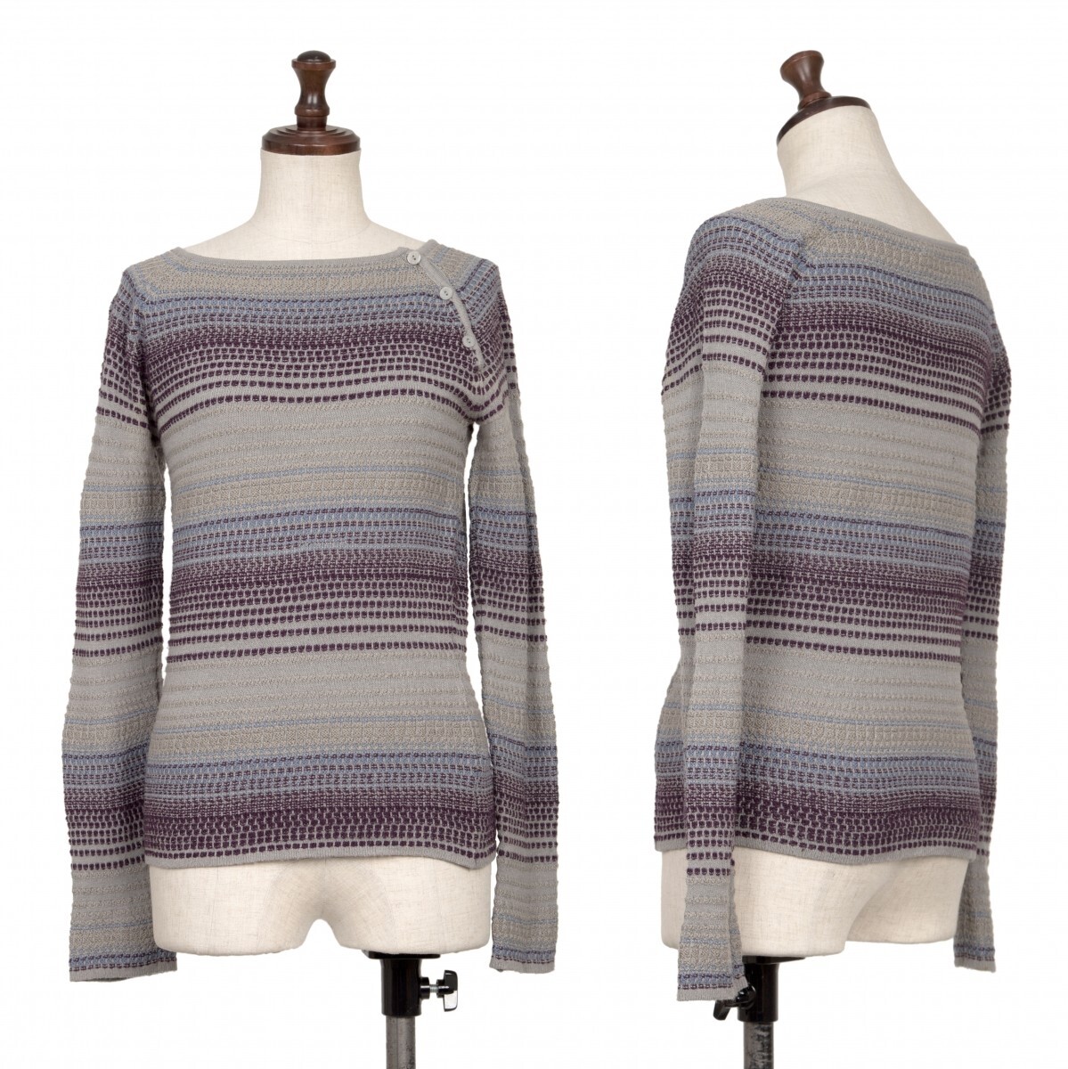 | エンポリオアルマーニEMPORIO ARMANI 肩ボタンジャガードニットソー グレー紫ブルー42 |
