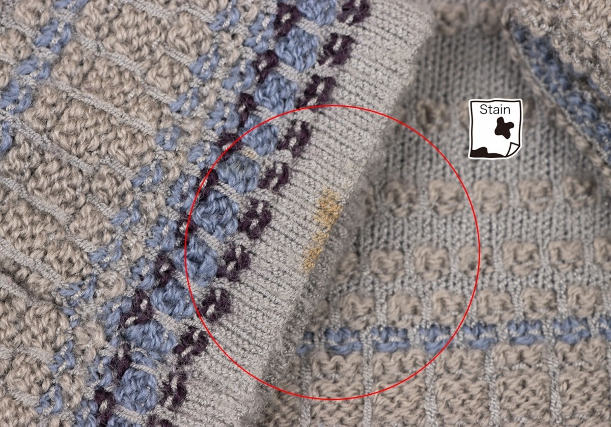 | コンディション | 右袖先に汚れ、後身頃に引っ掛けがあります(写真参照)。その他目立ったシミ、汚れ、ほつれ等なくいい状態です。クリーニング済み ※商品の詳細写真はこちらよりご確認頂けます。 | ||||||||