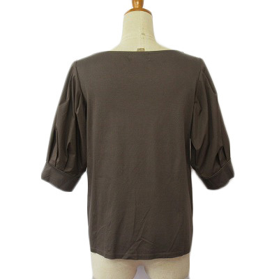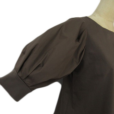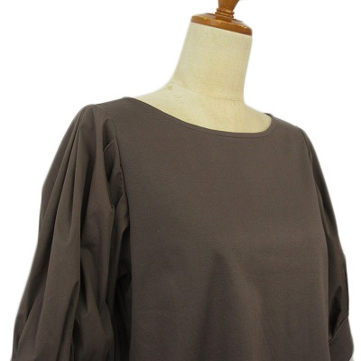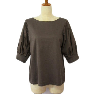 オペークドットクリップ OPAQUE.CLIP シルキースーピマ 切替ボリュームスリーブカットソー 38 茶 ブラウン レディース
