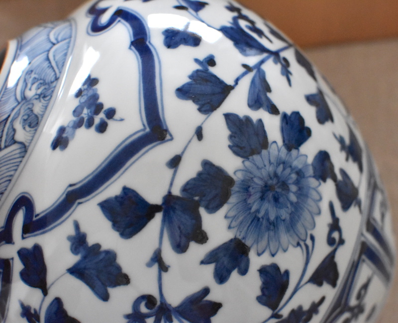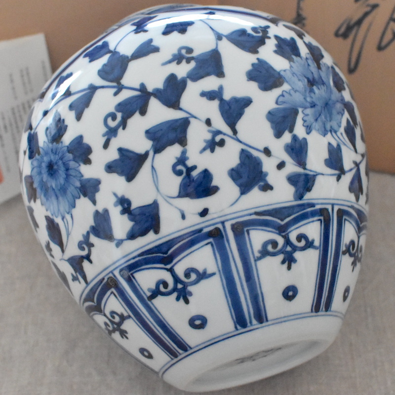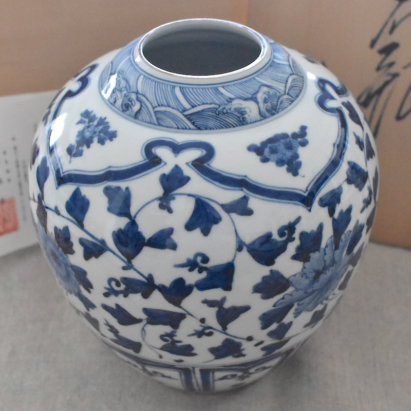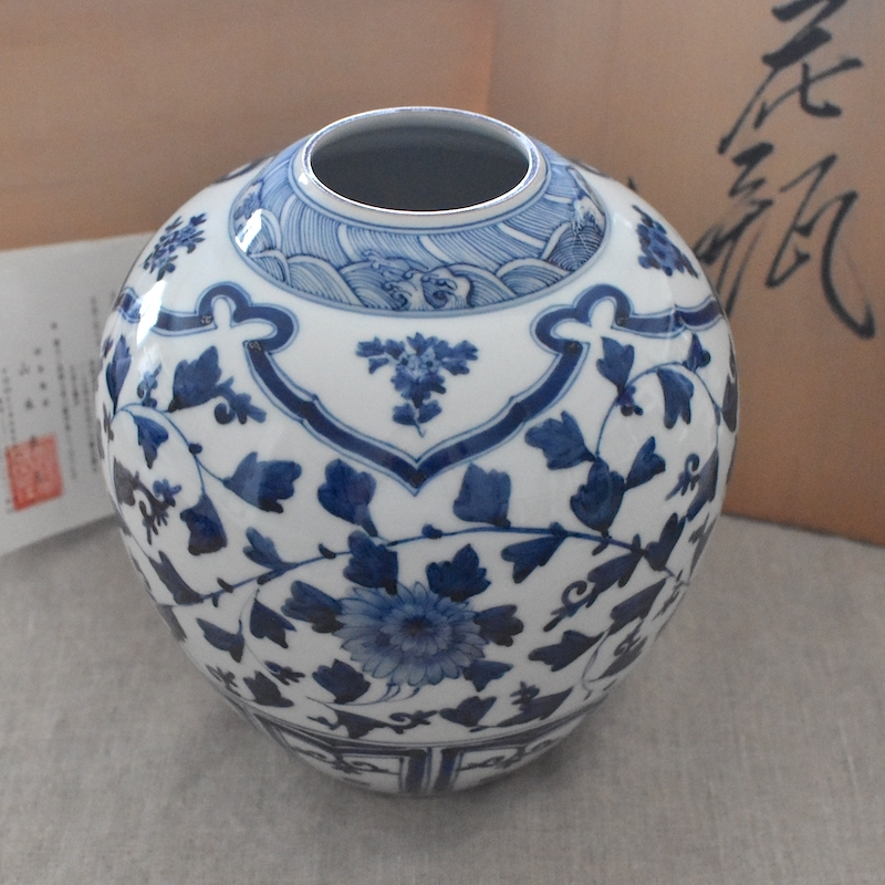 【商品スペック 】山本長左・花唐草紋 7号花瓶・口径 約6.2cm(最大径 約19cm) × 高さ 約19cm・磁器製品・参考価格 52,800円