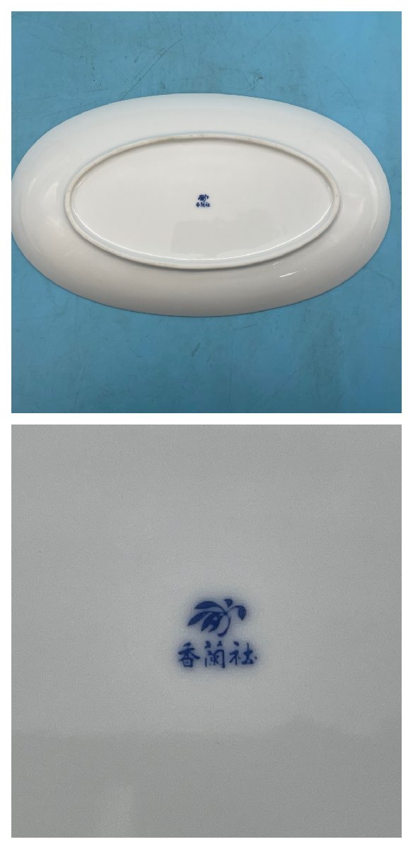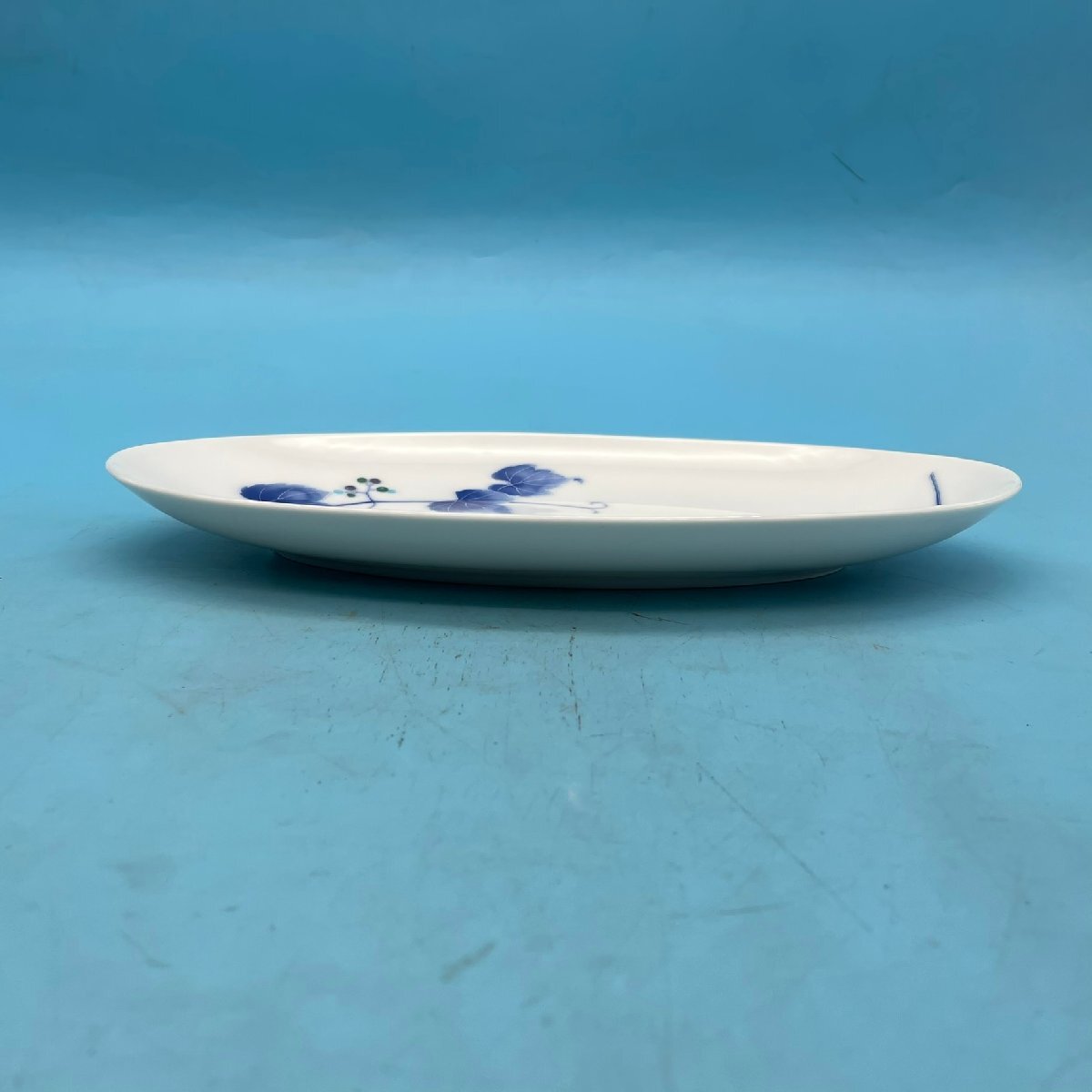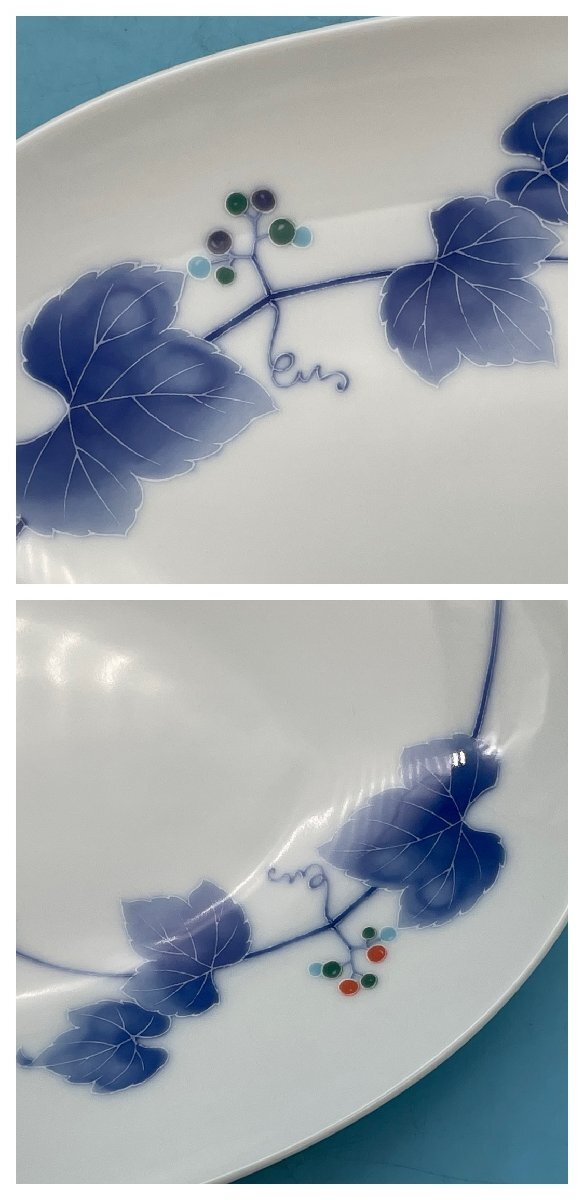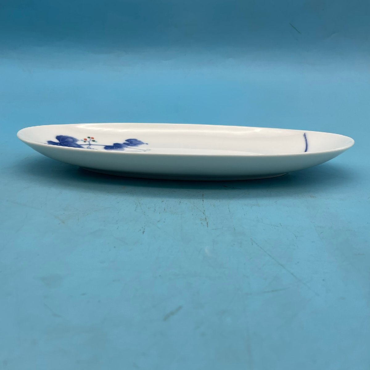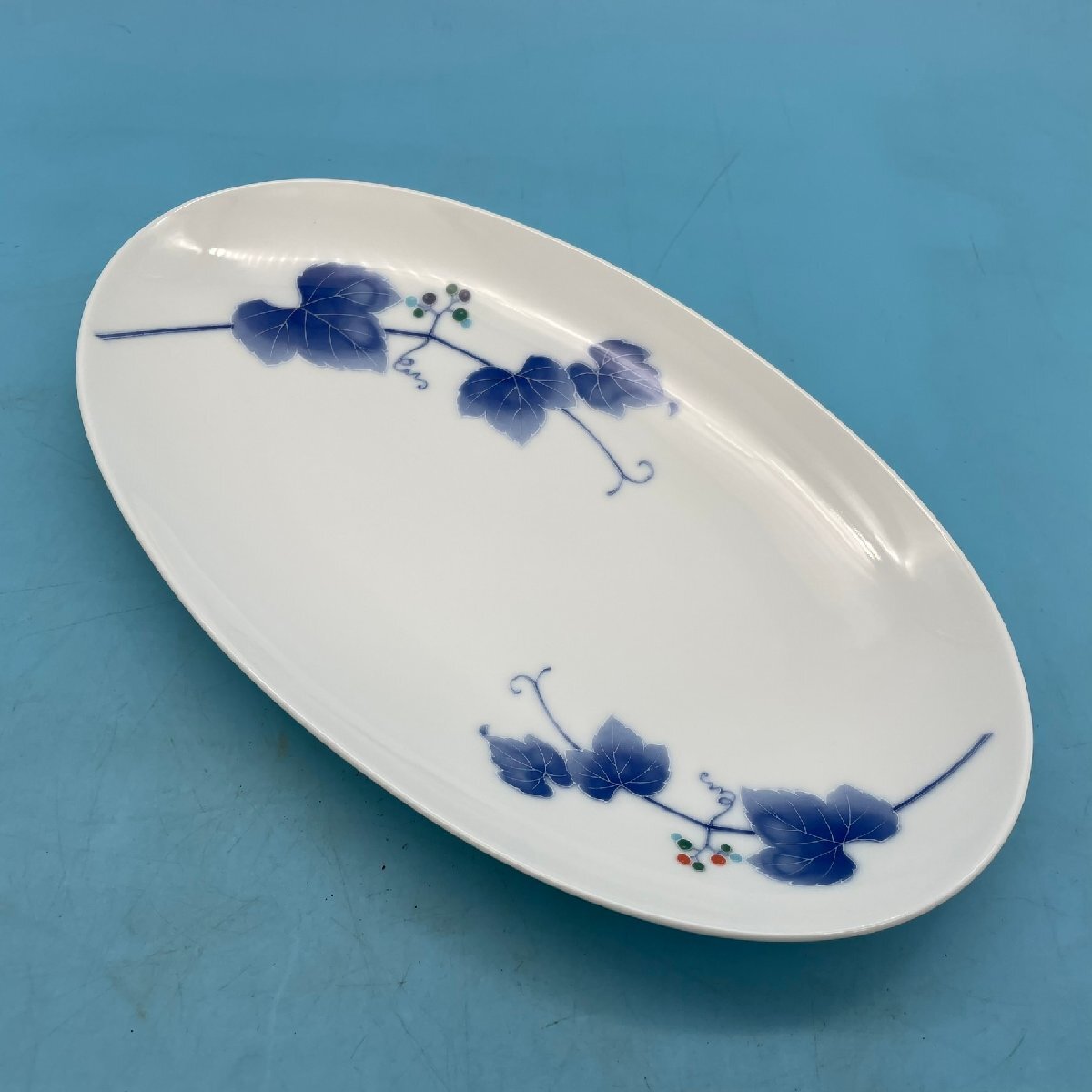 【12416】香蘭社 皿 オーバル型 野ぶどう プレート ディッシュ 陶器 陶磁器 食器 葡萄 ブドウ 青 白 楕円形 植物 果物 フルーツ 上品