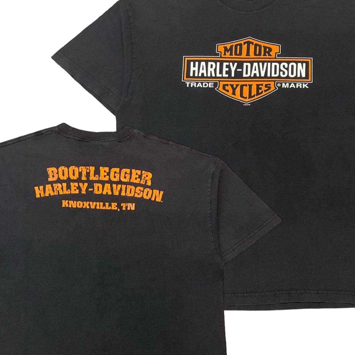 Harley Davidson 半袖 Tシャツ XL ブラック BOOTLEGGER MOTOR CYCLES ロゴ モーターサイクル ハーレーダビッドソン 両面プリント