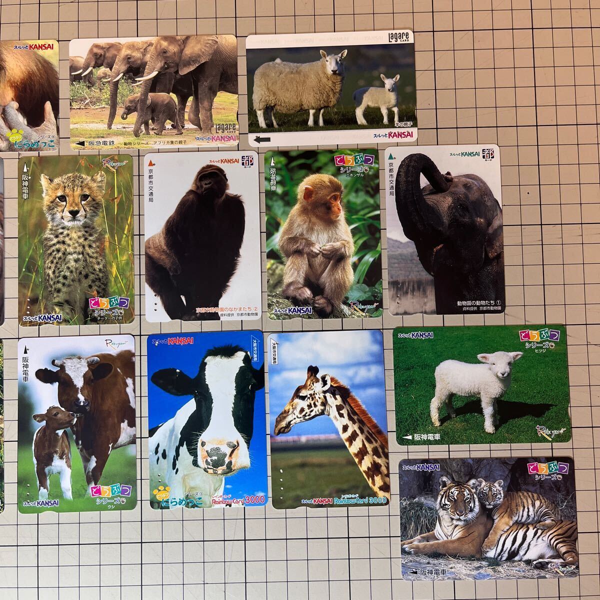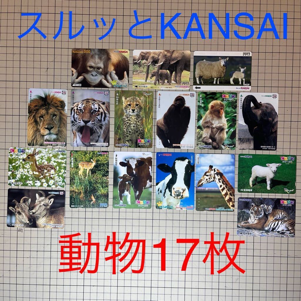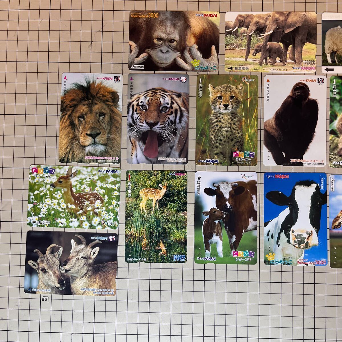 使用済みスルッとKANSAIの動物のカード17枚です。