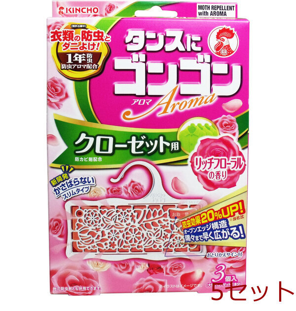 衣類の防虫とダニよけ! 防虫アロマとエムペントリンの防虫W効果! 収納内にダニを寄せ付けません! ・優雅な香りがずっと続いて、しっかり防虫! ・オープンエッジ構造で隅々まで早く広がる! ・におわない防カビ成分配合! カビの発育を抑え、衣類を守ります。 ・横長タイプだから防虫成分がしっかり揮散して広いクローゼットで高い防虫効果が得られます。 ・使いやすく、かさばらないスリムタイプ。 ・お取替えサイン付。 「お取替え」の白い文字が出たら、お取替えください。 ・サンドイッチ効果(2、700Lのクローゼットに3個)で両側から薬剤が隅々まで広がります。 ・直径35mmの太いパイプにも吊るせます。 ・毛皮、金糸・銀糸・ラメ加工・皮革製品等にも使用できます。 ・他の防虫剤(パラジクロルベンゼン、ナフタリン、樟脳等)と併用しても差しつかえありません。 個装サイズ:150X225X36mm 個装重量:約133g 内容量:3個入 【発売元:大日本除虫菊株式会社(金鳥)】 【成分】 防虫成分:エムペントリン(蒸散性ピレスロイド)、ハーブ成分(主としてテルピネオール) 防カビ成分:イソチアゾリン系防カビ剤 【ご使用方法】 袋から取り出して、クローゼットのパイプに吊るしてご使用ください。 【適用害虫】 イガ、コイガ、ヒメカツオブシムシ、ヒメマルカツオブシムシ 【ご使用の目安】 下記の寸法程度のクローゼットの場合(ジャケットなら約20着分)、ゴンゴン3個がご使用の目安です。 ・高さ225cm×幅185cm×奥行65cm ※クローゼットの大きさにあわせて、900Lごとに1個増減してご使用ください。 ※通常の洋服ダンスには洋服ダンス用ゴンゴンをご使用ください。 ※収納時、衣類に虫や汚れが付いていると食害やカビの原因となりますので、クリーニング等にて汚れをよく落としてからご収納ください。 【ご使用上の注意】 ・パッケージに記載されている使用量を守ってご使用ください。 ・衣類の入れ替えをするときは、部屋の換気を行ってください。 ・クローゼット等の密閉性のある収納庫内でご使用ください。 ・幼児の手の届くところに置かないでください。 ・本品は食べられません。万一食べたときは医師にご相談ください。 ・誤食等の対応のため、使用中はパッケージを保管してください。 ・用途以外には使用しないでください。 (防カビ効果は、せんい製品防虫剤の用途で使用した場合の効果です。) 【保存方法】 密封して高温を避け、直射日光の当たらないところで保存してください。 【標準使用量】 クローゼット(2700L):3個 ウォークイン(1800L):2個 【有効期間】 使用開始後 約1年。 (温度、収納容器及び使用状態等で一定しないことがあります。) 注意事項 予告なく成分・パッケージが変更になることがございます。 予めご了承ください。 *予告なく成分・パッケージが変更になることがございます。予めご了承ください *ダンボールを使用して発送する場合には、入数以下の個数の場合、 中古ダンボールを使用する場合があり、ご注文の商品とは異なるダンボールになる場合があります。 あらかじめ、ご了承ください。 |