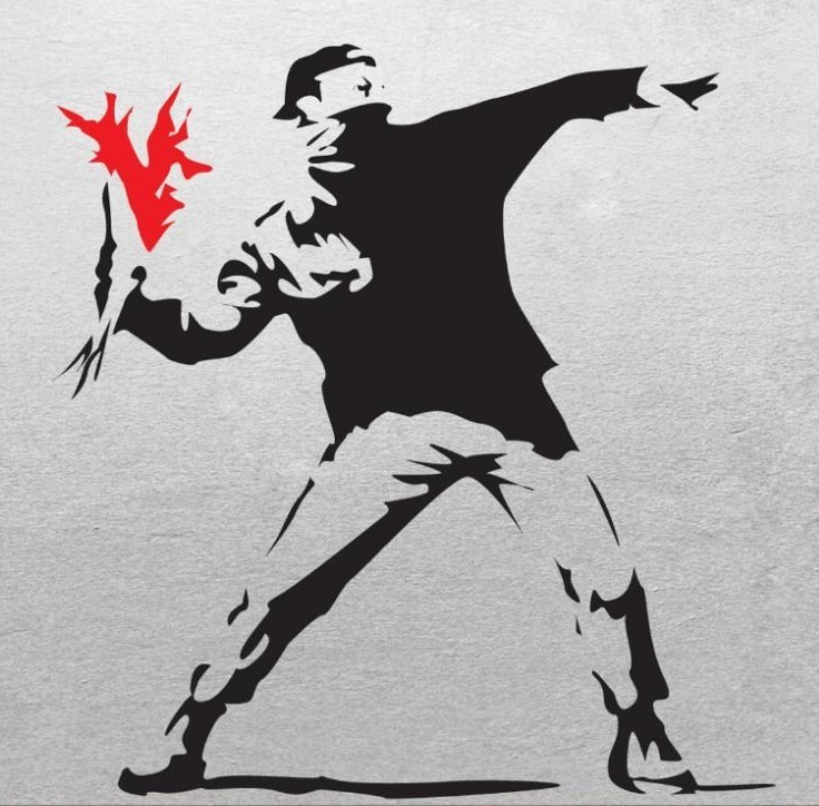 バンクシー ウォールステッカー デカール 花束 投げる 男 大 ①「Flower Bomber」