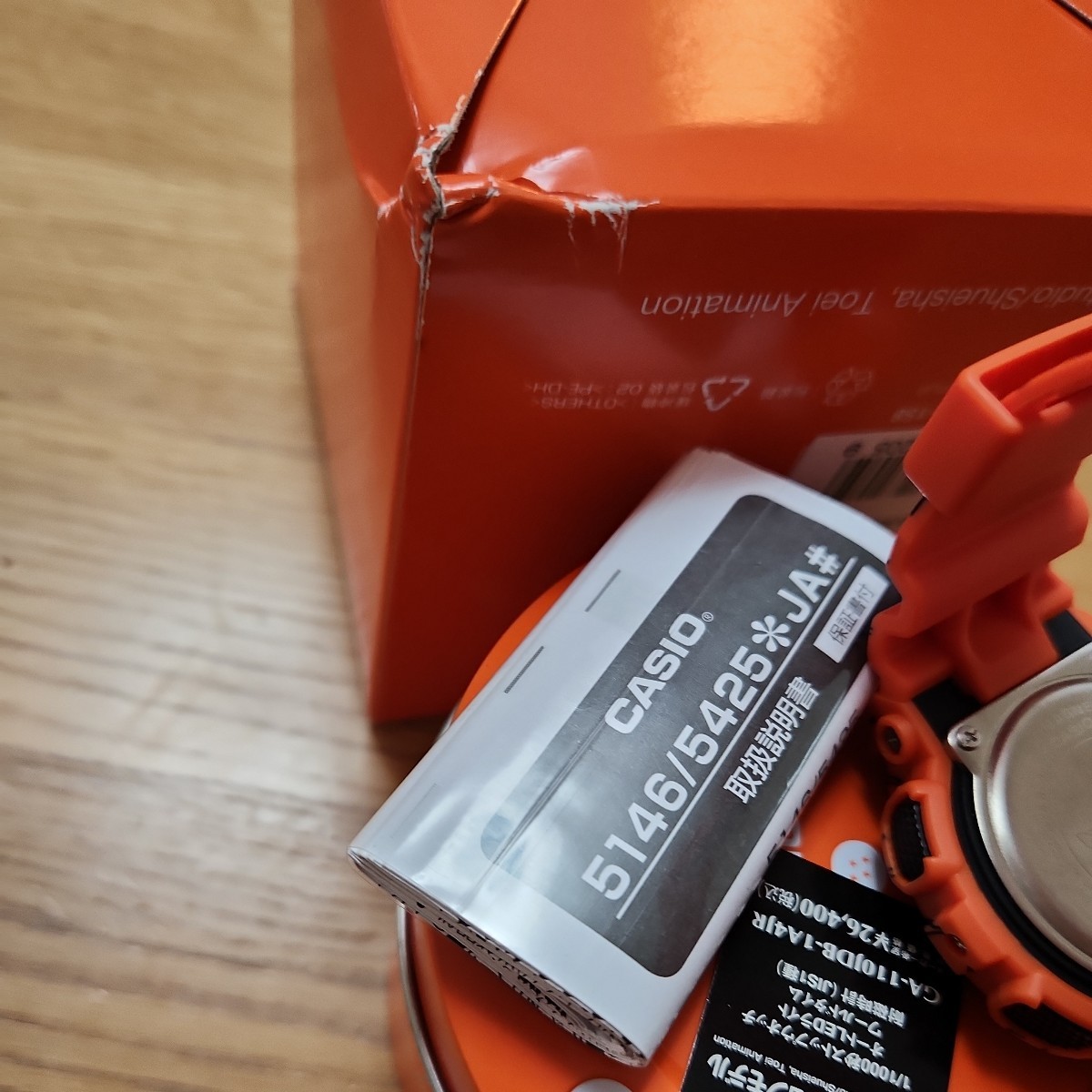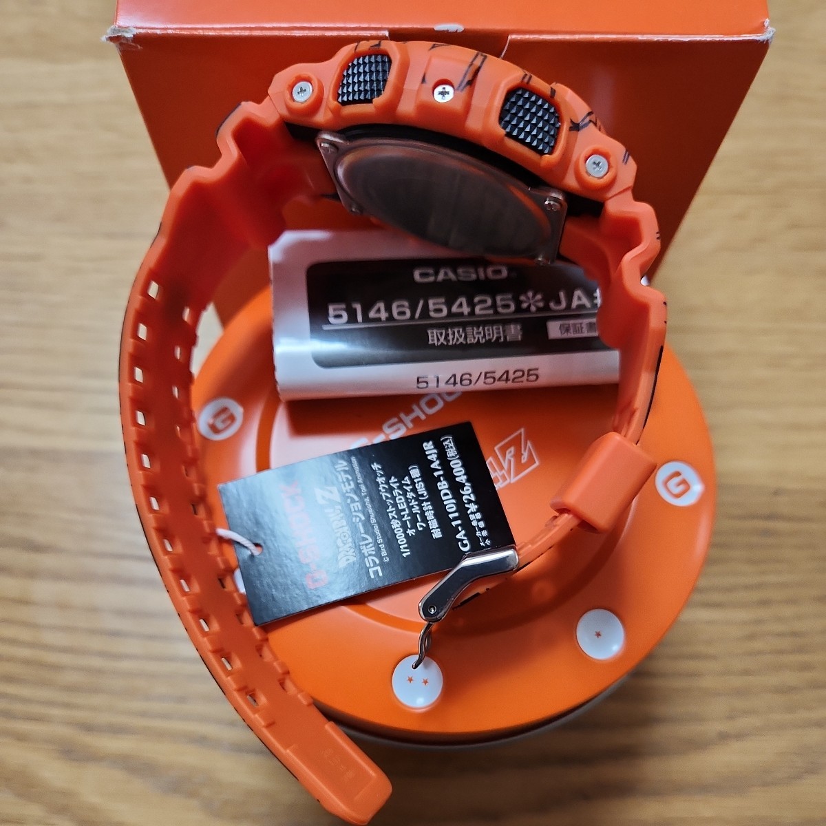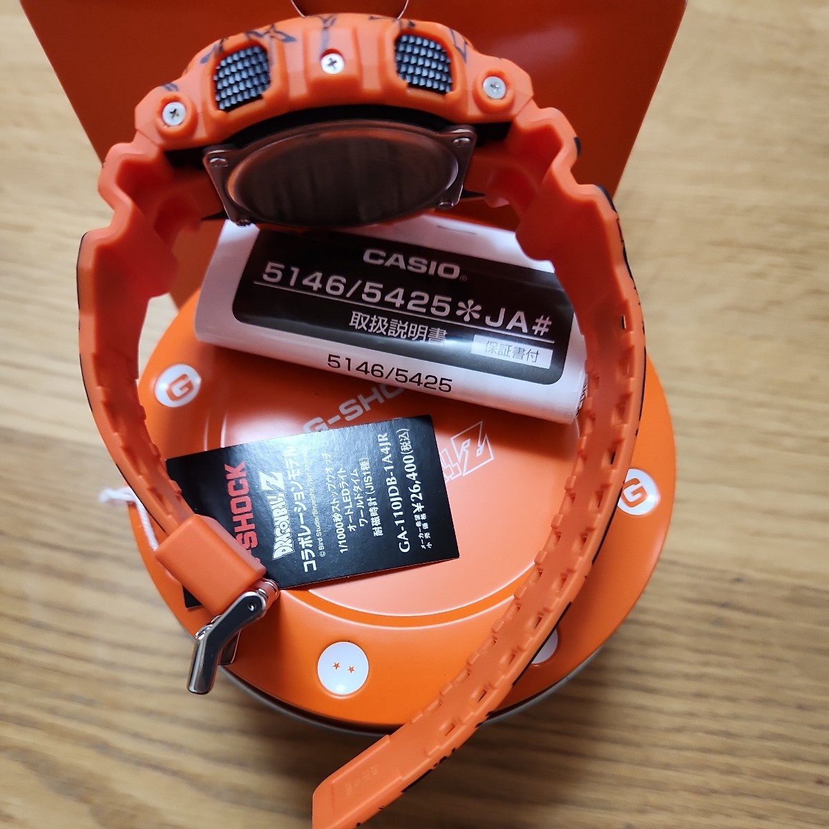 CASIO Gショック 希少モデル! ドラゴンボールモデル GA-110JDB-1A4JR 新品、未使用、完品 付属品、専用箱痛み有り 取説、プライスタグ付き ガラス、裏ブタ傷無し! 写真に有ります様に箱の底が一部破損しています。