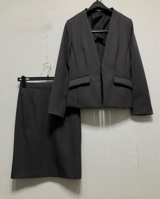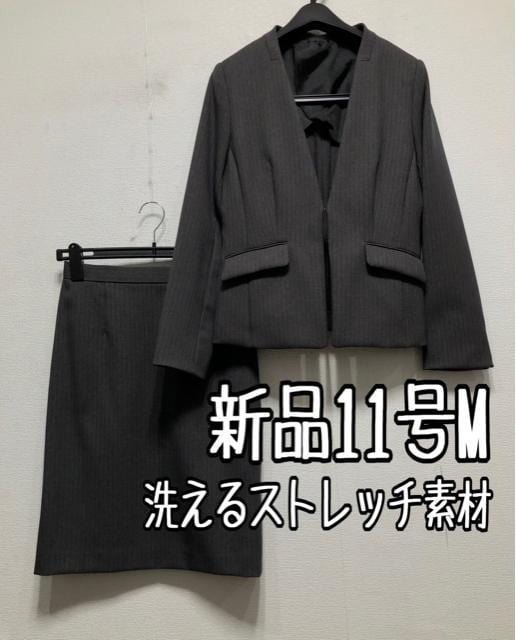 新品☆11号M♪グレー系♪洗える♪ストレッチ素材タイトスカートスーツ♪お仕事☆r497