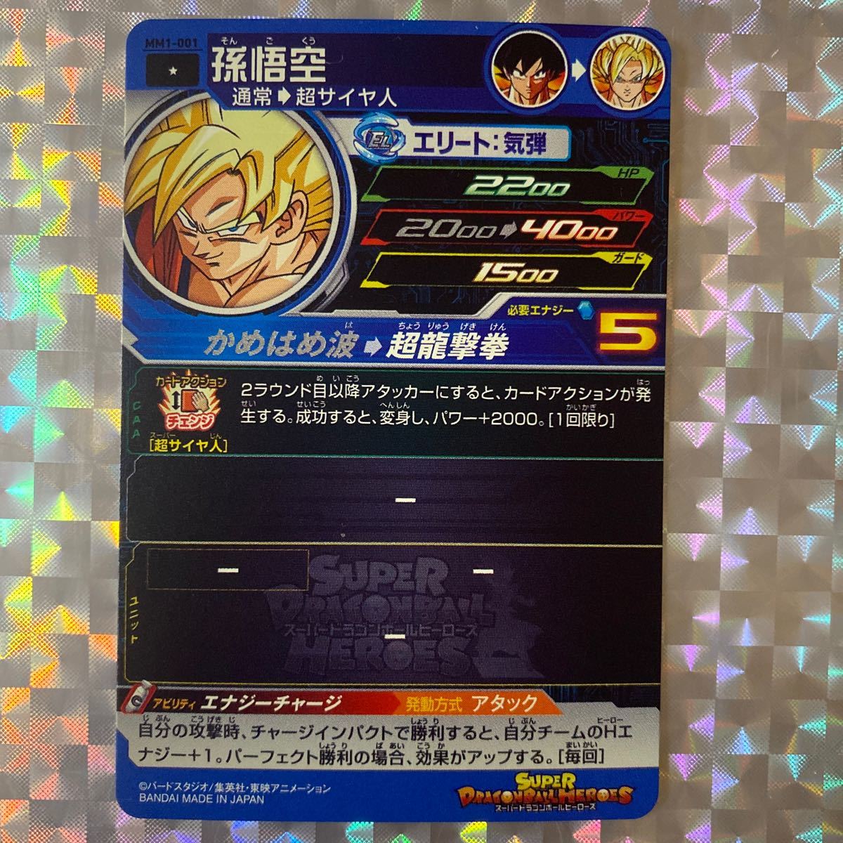 MM1弾コモン/ 孫悟空(→超サイヤ人)/ MM1-001/ 技:→超龍撃拳/ スーパードラゴンボールヒーローズ/ レアリティ:☆/ BANDAI