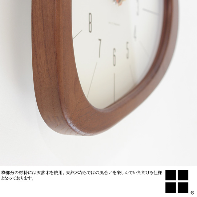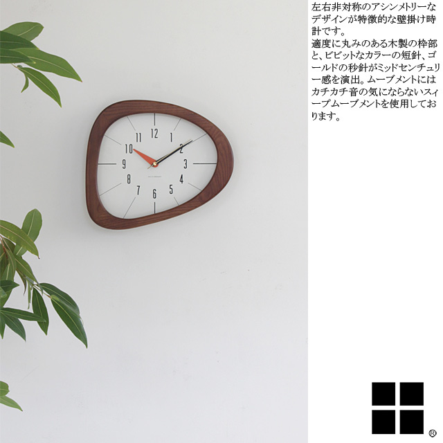 左右非対称のアシンメトリーなデザインが特徴的な壁掛け時計です。 適度に丸みのある木製の枠部と、ビビットなカラーの短針、ゴールドの秒針がミッドセンチュリー感を演出。ムーブメントにはカチカチ音の気にならないスィープムーブメントを使用しております。 枠部分の材料には天然木を使用し天然木ならではの風合いを楽しんでいただける仕様となっております。 商品重量約0.9kg ※壁面への取り付けの際には必ず設置場所及び、壁材をご確認のうえ固定して下さい。 設置場所の壁材によって別途穴あけ加工や取付金具などを必要となる場合がございます。予めご確認頂きますようお願い致します。 |