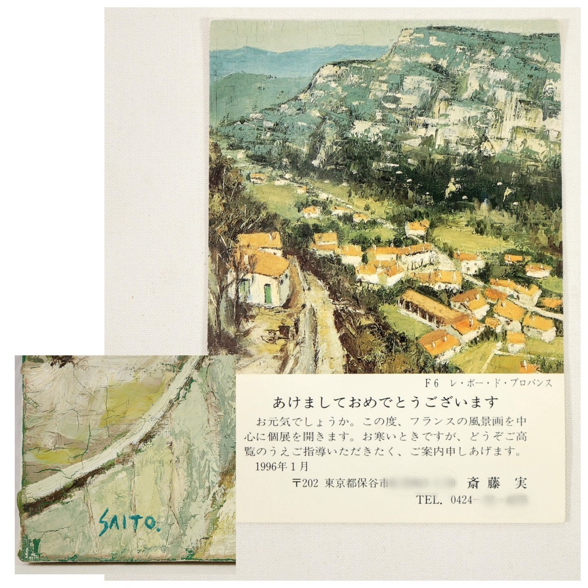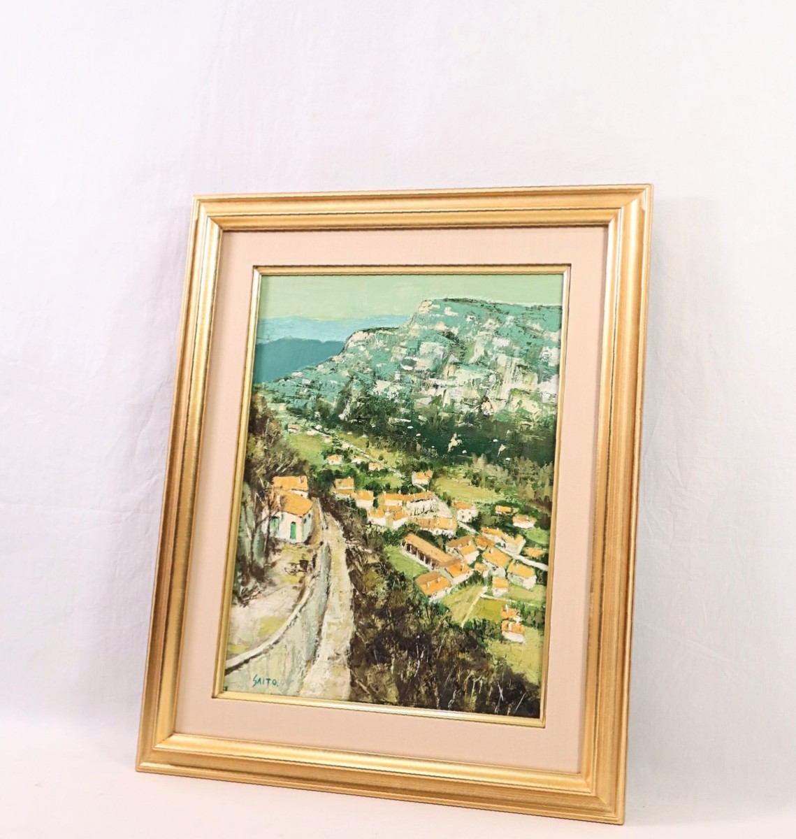 真作 斎藤実 油彩「レ・ボー・ド・プロヴァンス」画寸 F6 長野県出身 仏南西部ブーシュ=デュ=ローヌ県の深い谷間にある小さな町 8393