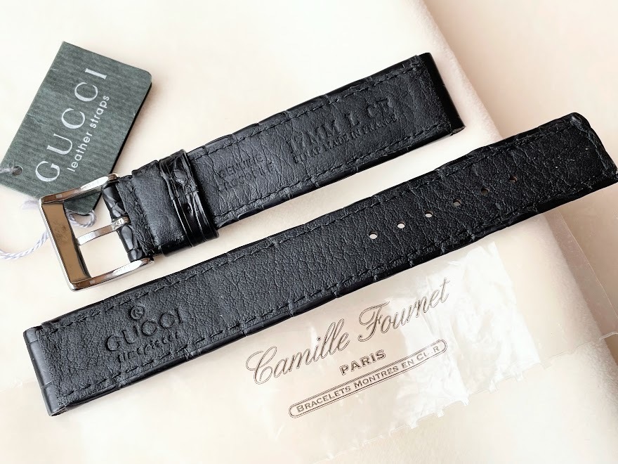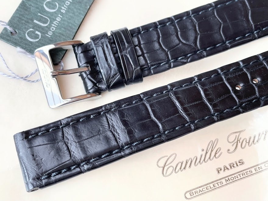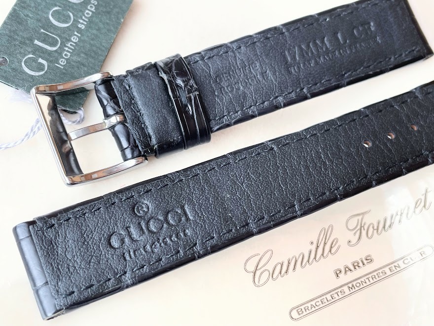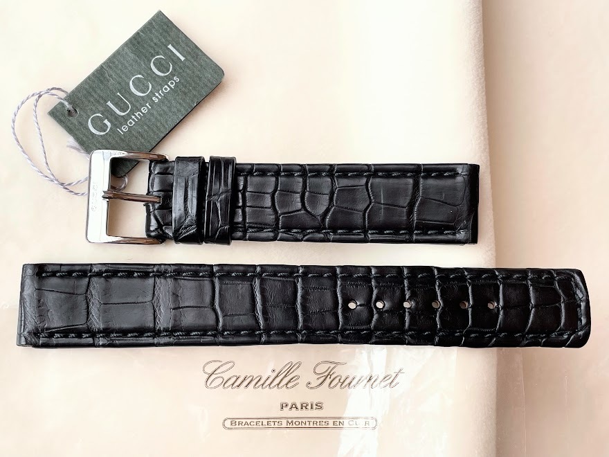 カミーユフォルネ(GUCCI)  クロコ  ブラック  17mm  新品   L(ロングサイズ)    純正尾錠付