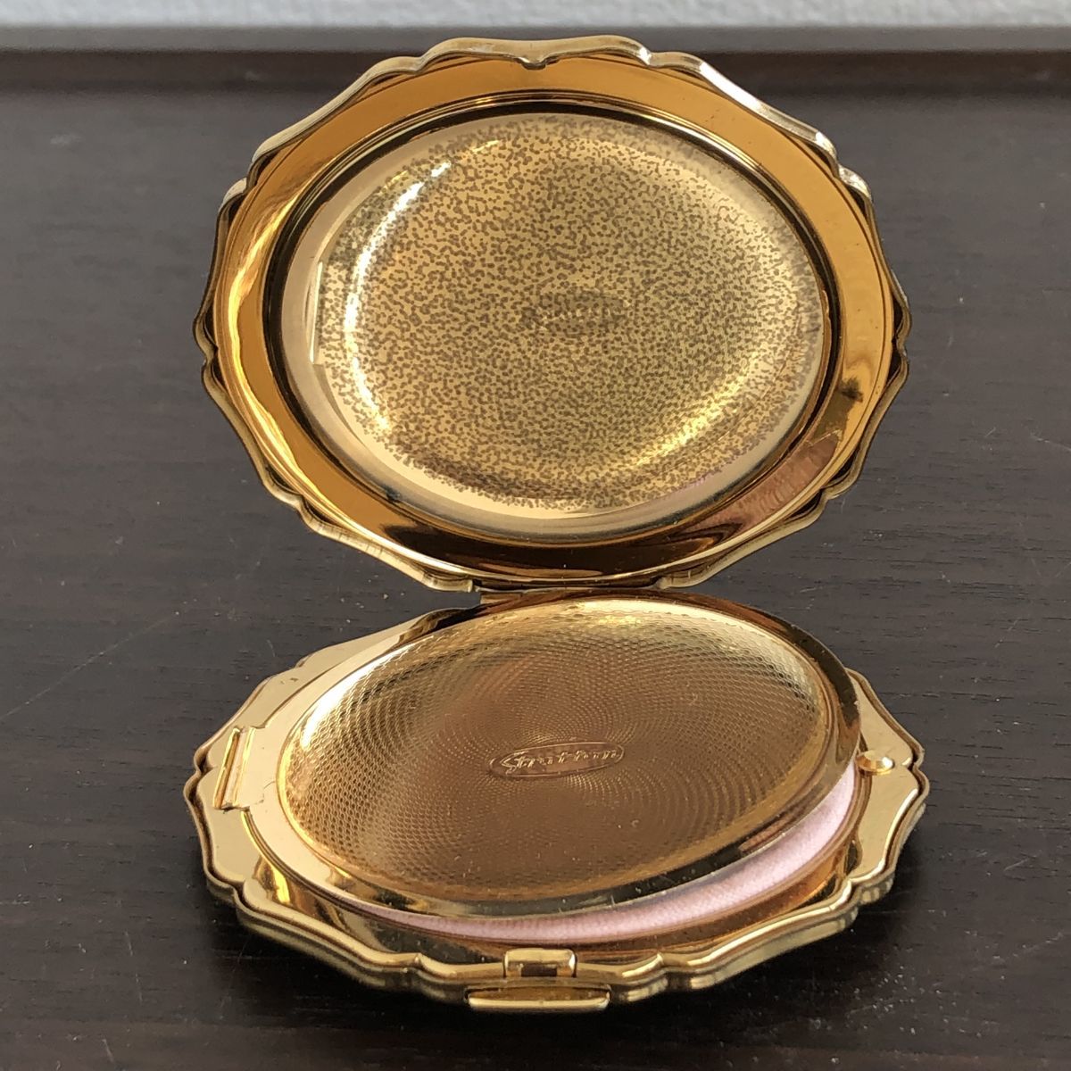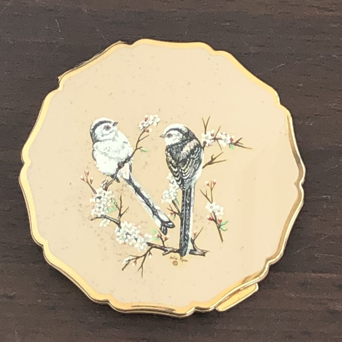 英国製 Stratton アンティーク コンパクト ミラー エナガ 鳥 花柄 ストラットン ENGLAND レトロ ビンテージ/41-2-6