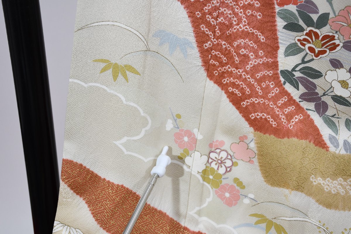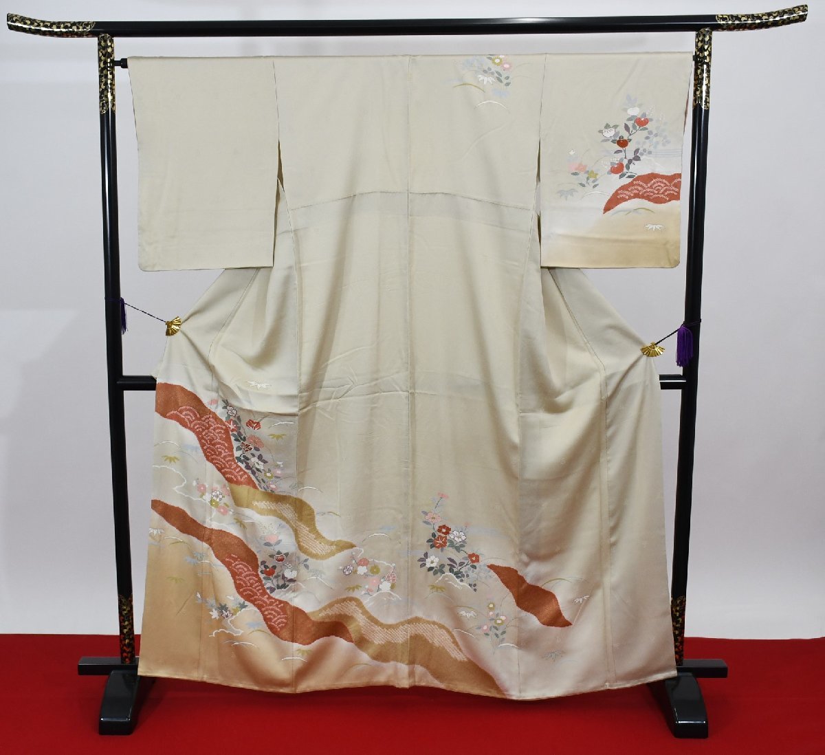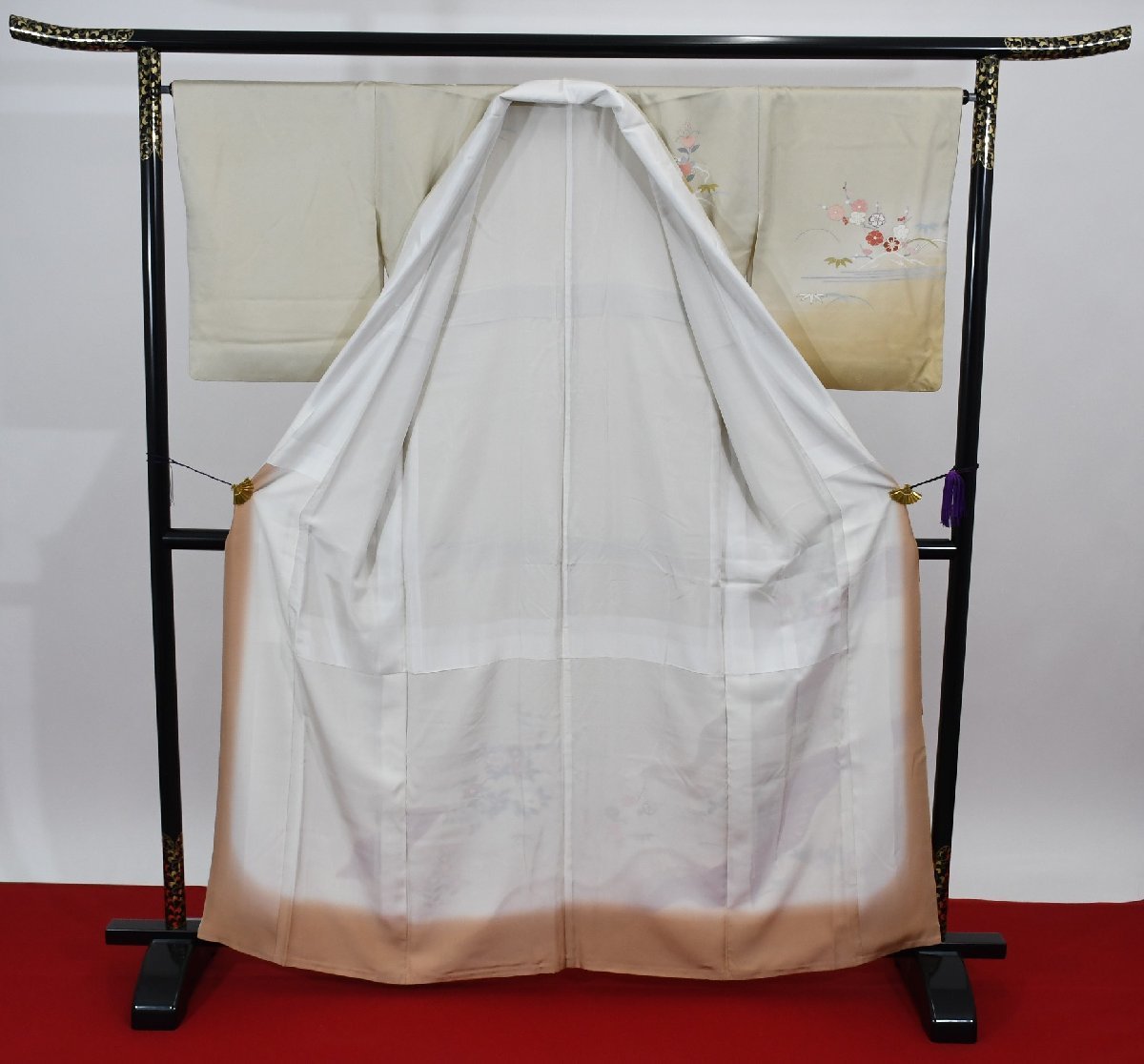 コメント | 衽、後ろ、袖、衿等にシミ汚れがあります。新品ではありませんので、中古品という扱いです。少したたみジワがある場合がございます。ご了承の上、ご入札をよろしくお願いいたします。 |