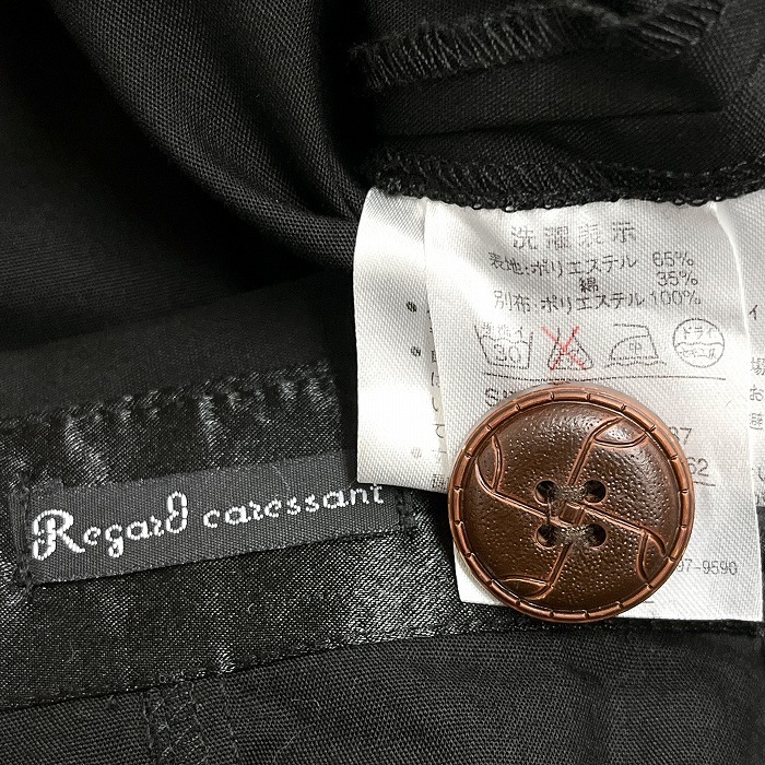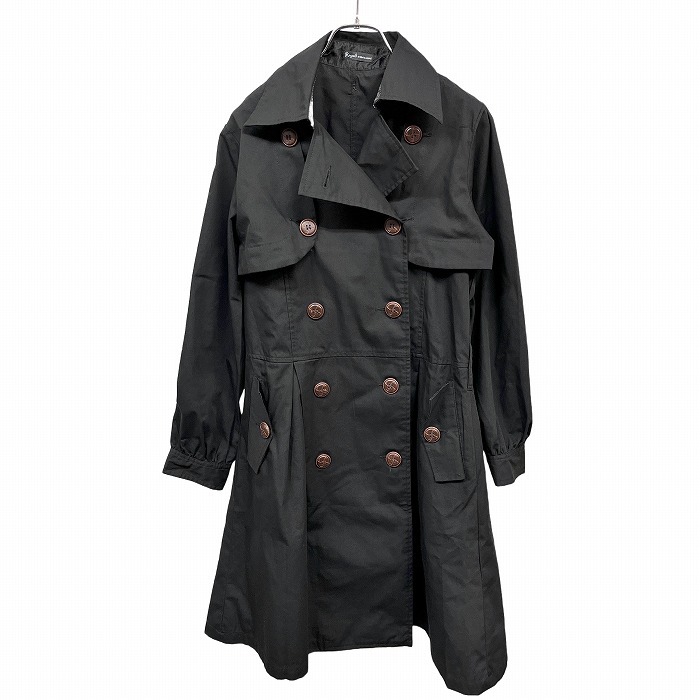 | 商品タイトル | Regard caressant 薄手 トレンチコート 袖脱着可 裏地無し 無地 ボタン留め 裾フレア パフスリーブ 長袖 ポリ×綿 M 黒 レディース |