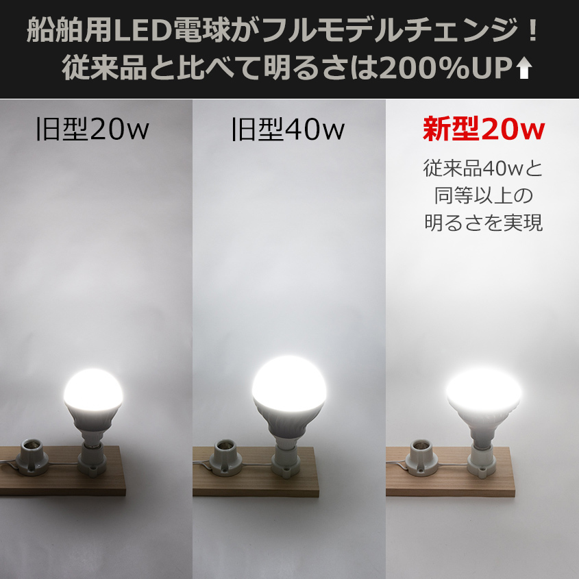 集魚灯 デッキライト に最適な 船舶用 LED電球 20w E26口金 12v 24v 兼用タイプ。
