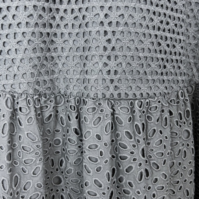 | 【コメント】 カットワークレースの可愛いデザインロングワンピースです。使用感は感じられず、気になる汚れはなく綺麗なお品物です。 |
