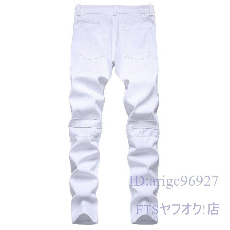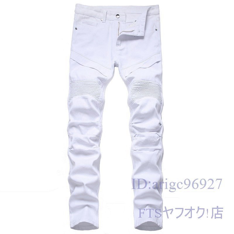 S808☆新品メンズ デニムパンツ ジーンズ バイクパンツ ジーパン ライダー パンツ スキニーパンツ ストレッチパン大きいサイズ ホワイト