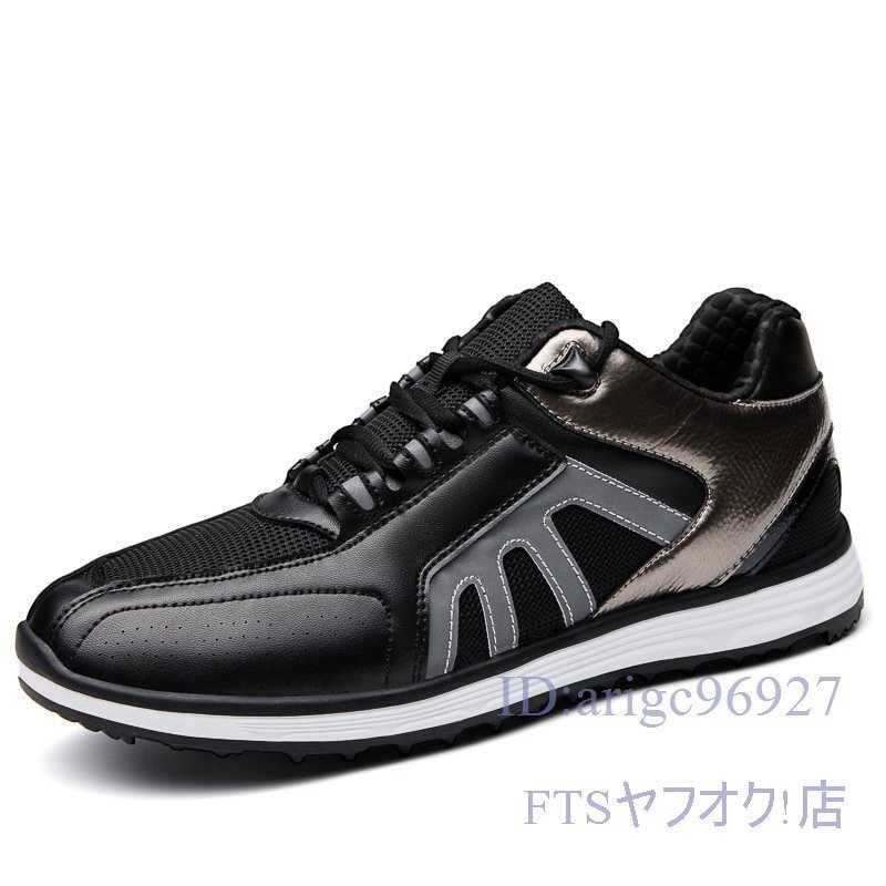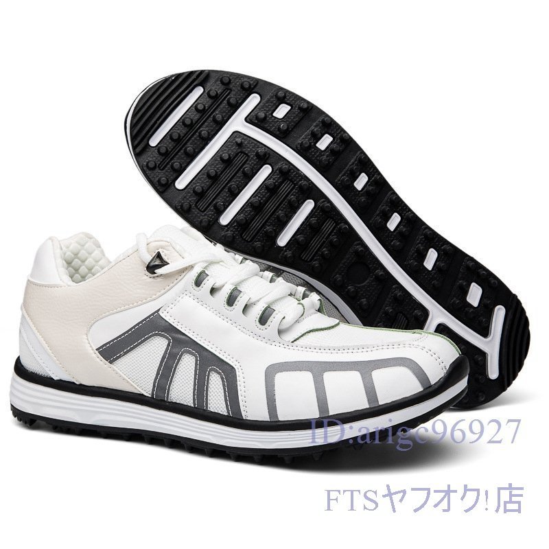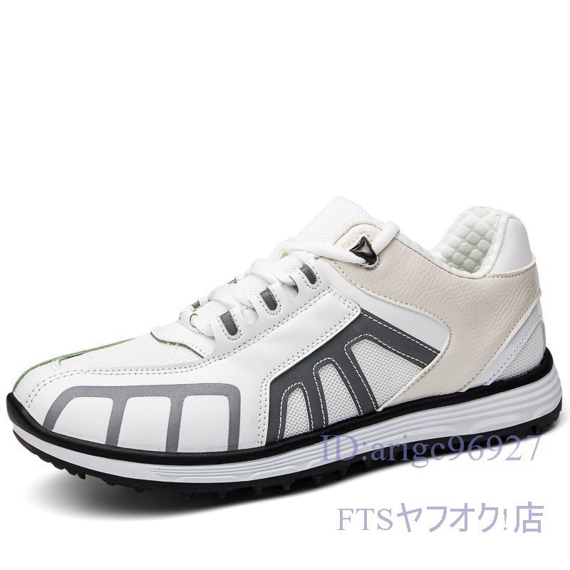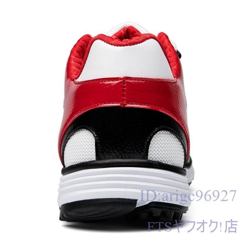 S817☆新品メンズゴルフシューズスニーカー革靴ランニングシューズスパイク靴スポーツシューズ防滑耐磨通気ホワイトレッド26.5cm