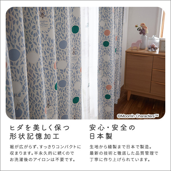 形状記憶加工がさせれているので、いつまでもきれいなドレープを保ちます。