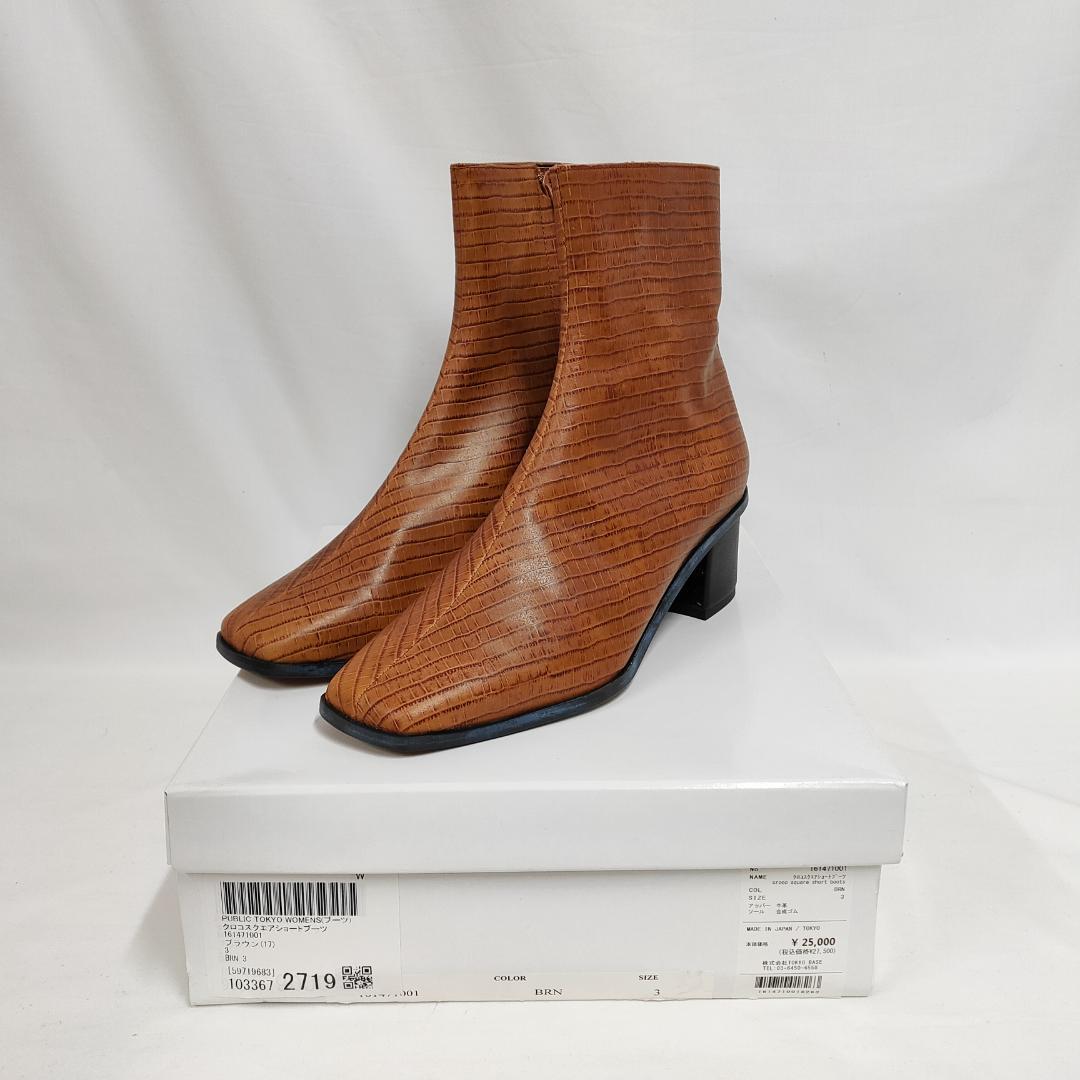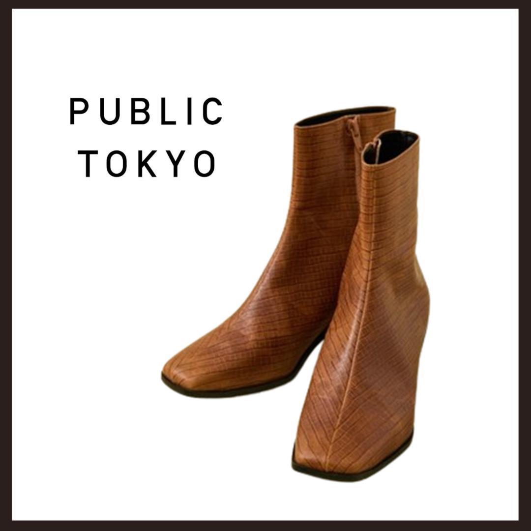 ●○新品 未使用 PUBLIC TOKYO クロコスクエアショートブーツ24.5○●