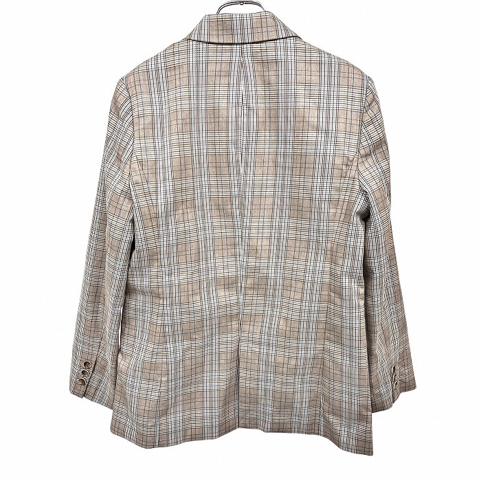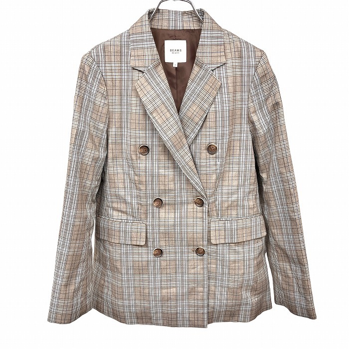 商品タイトル | ビームスハート BEAMS HEART 少し薄手 テーラードジャケット ダブル 総裏地 チェック 長袖 ポリ100% S ブラウン 茶×青 レディース |
