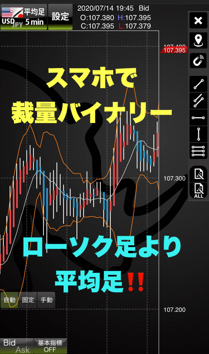 この平均足手法は、「バイナリーオプション」で安定して勝ち続ける為の裁量手法です。