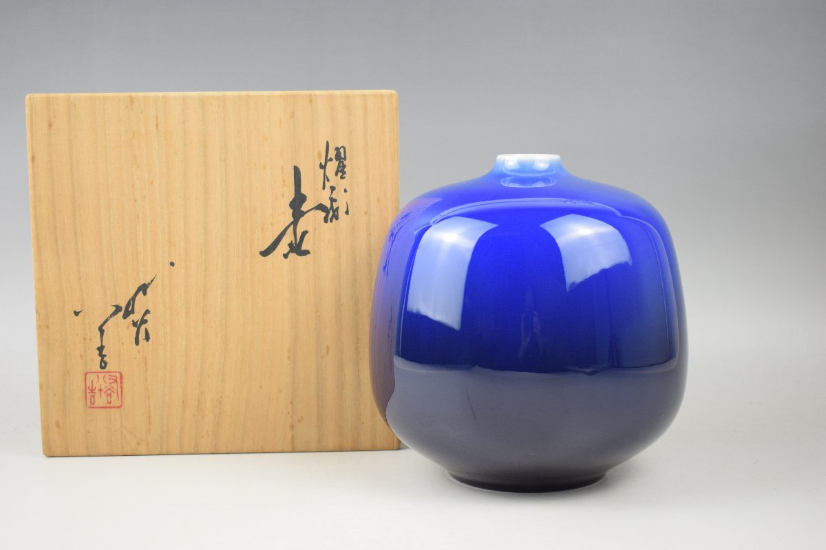 【人間国宝 三代徳田八十吉 金銘 燿彩壷 共箱 真作保証】