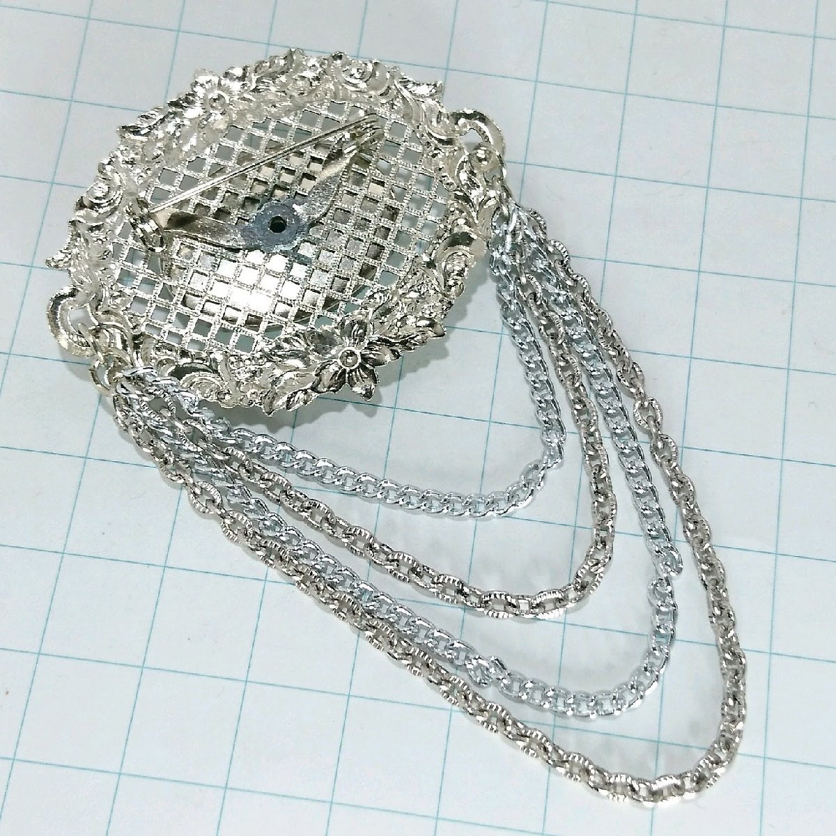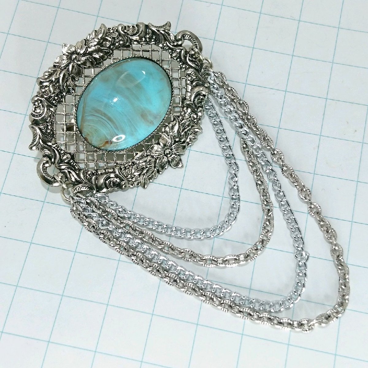 送料無料)ビンテージ☆青瑪瑙 チェーンエンブレム☆アンティーク ブローチ A22721