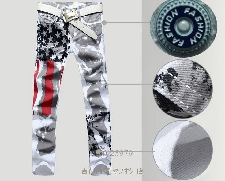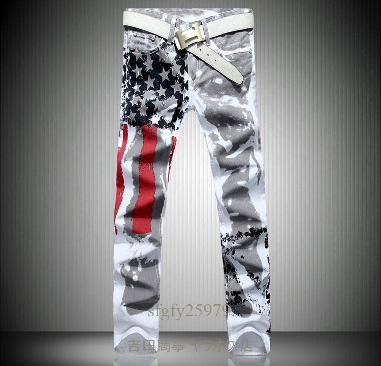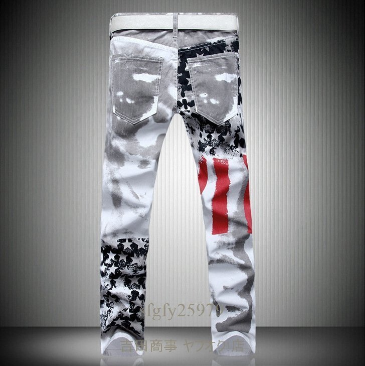 B0410☆新品上質 オシャレ メンズ デニムパンツ ジーンズ バイクパンツ プリントスキニー 個性 ジーパンストレッチ サイズ選択可