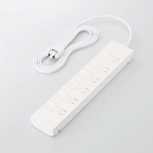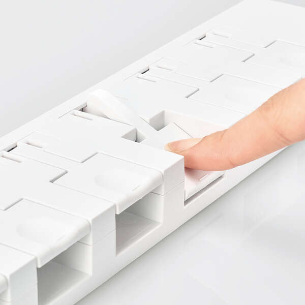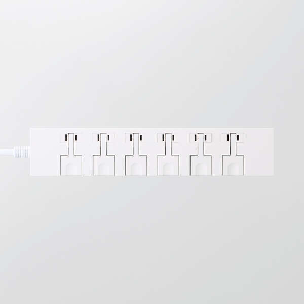 | ●レバーを押すだけで簡単に、片手でプラグを抜ける6個口のタップ。 タップを手で押さえたりプラグを強い力で引き抜いたりする必要はありません | |