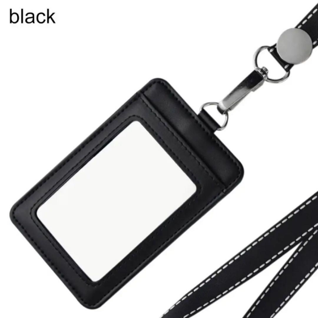 【お買い得】本革カードホルダー ストラップ付 3つのカードホルダー キーホルダー black ブラック 黒 カードケース 名刺