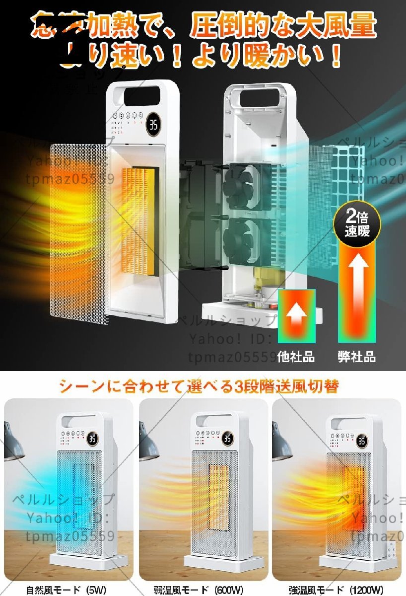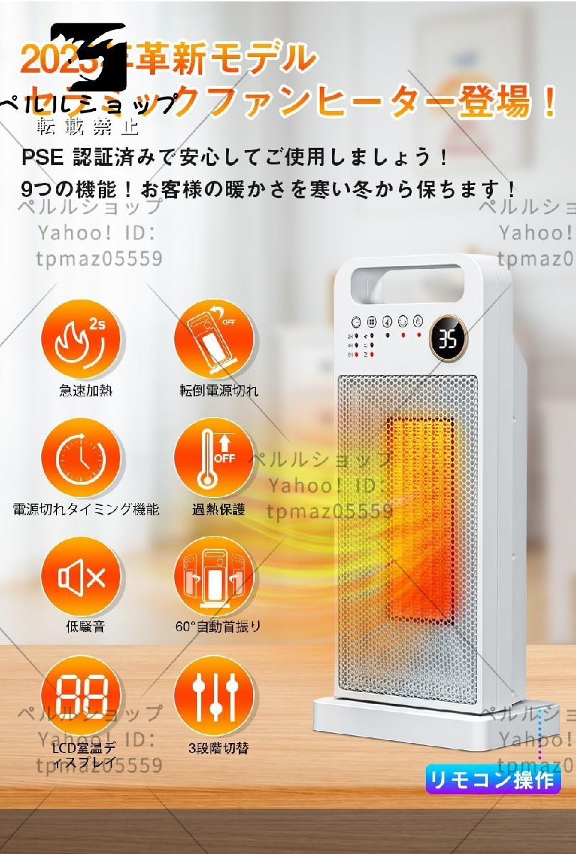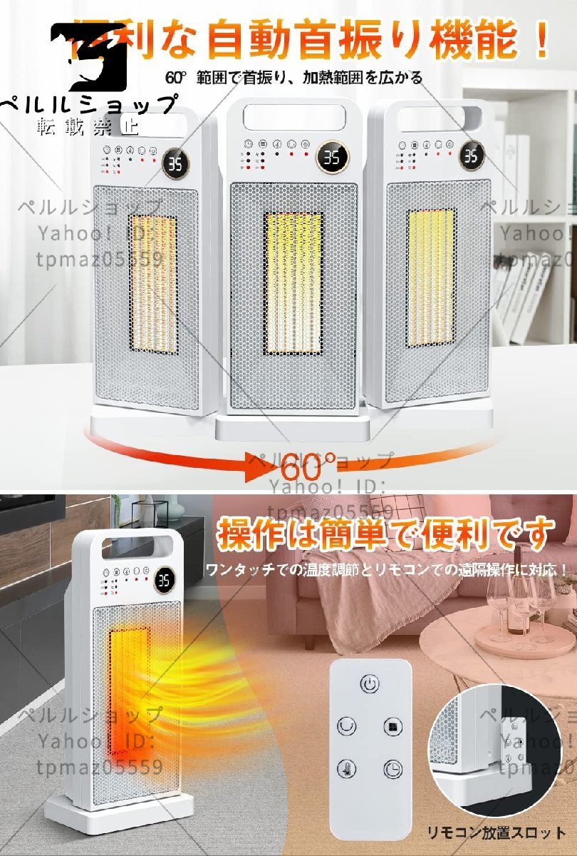 小型 電気ファンヒーター 速暖 大風量 自動首振り 室温表示 温度調節可能 転倒自動オフ タイマー機能 暖房器具 リモコン付き