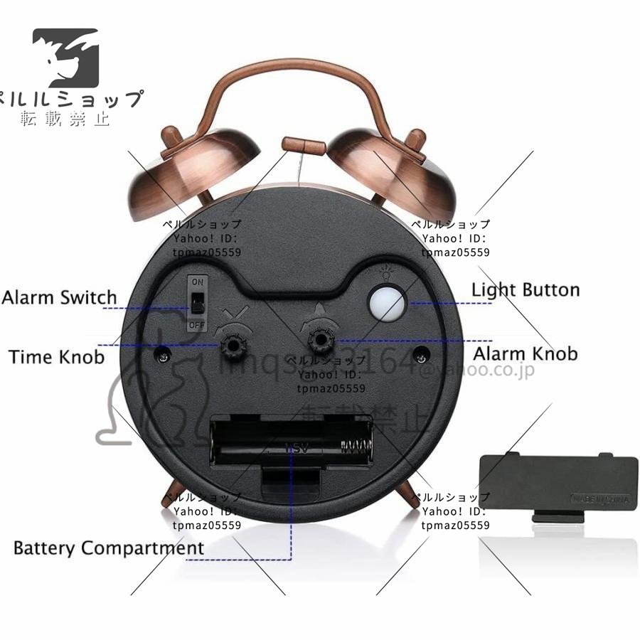 目覚まし時計 アナログ めざまし時計 大音量 ツインベル 連続秒針 卓上時計 静音 おしゃれ 電池式 置き時計 ナイトライト付き 絶対起きれる時計 数字大きい見や