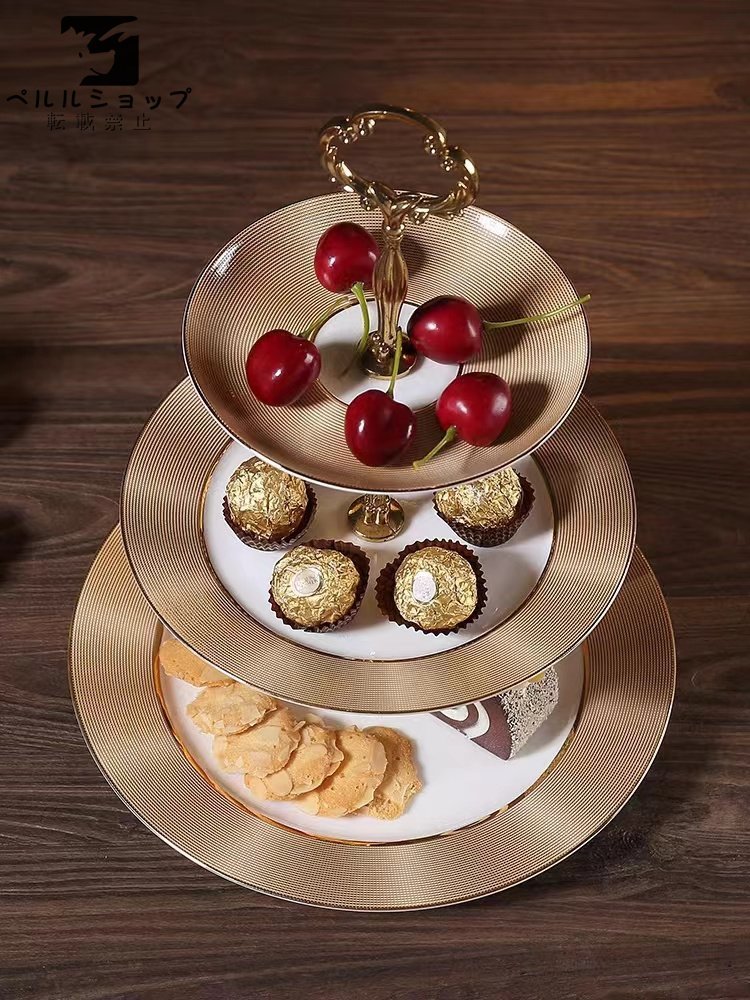 ☆ 高級製品 ケーキ スタンド プレート 3段セット アフタヌーンティー フルーツ トレー 皿
