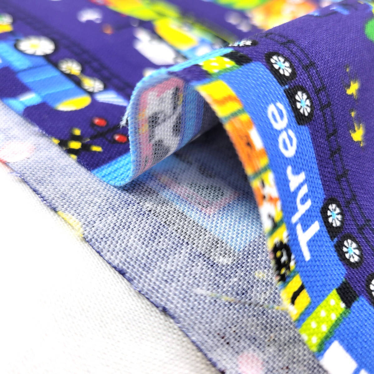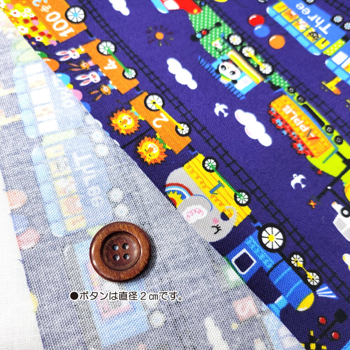 キッズコットントレイン柄 オックス生地 #ネイビー 幅110*100㎝
