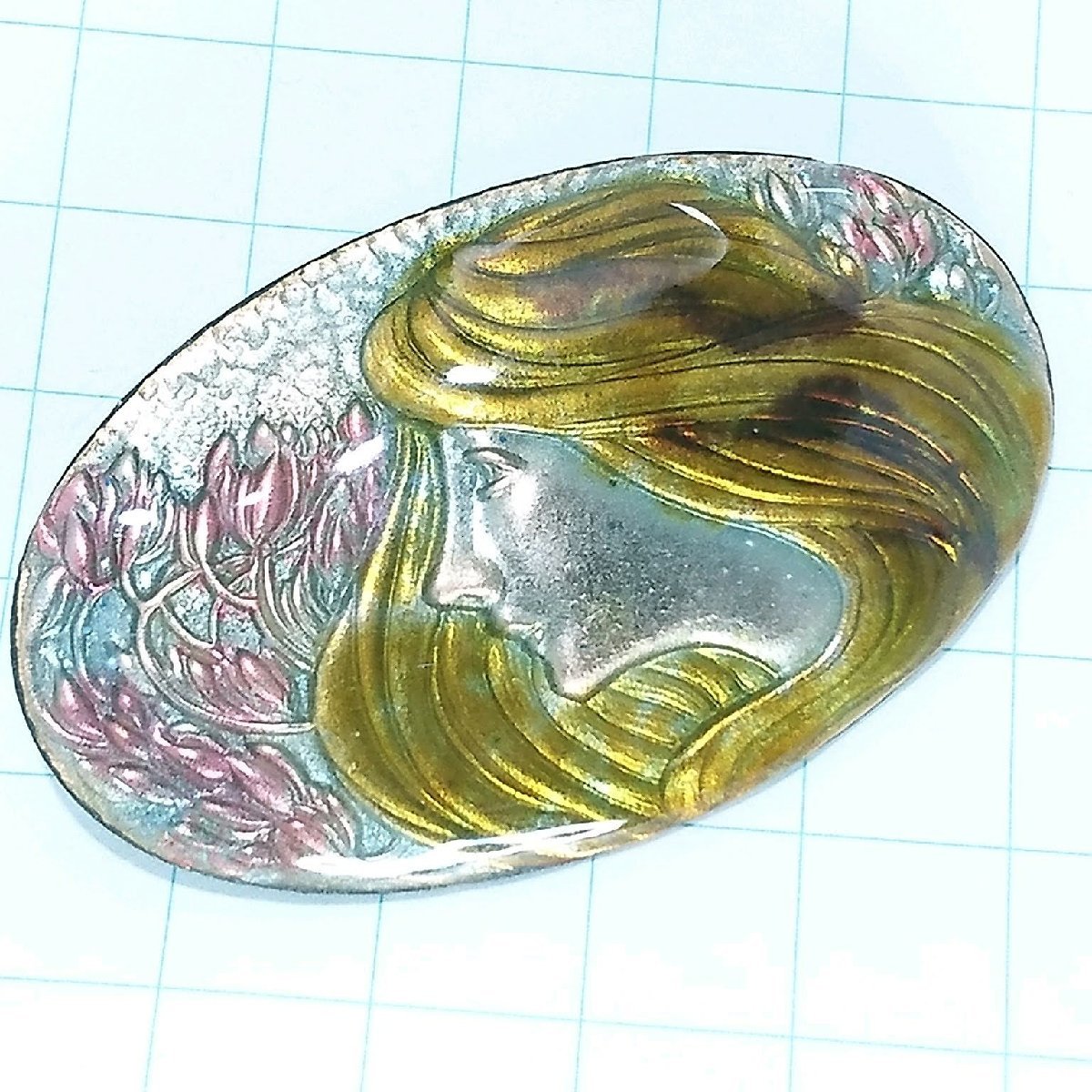 送料無料)ビンテージ☆七宝焼き 少女モチーフ☆アンティーク ブローチ A22974