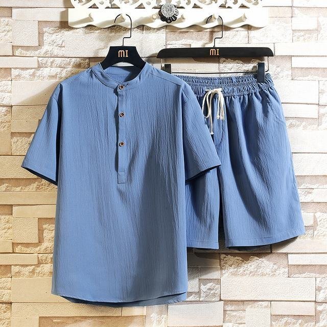 夏 涼しい 通気 速乾 大きいサイズ 春コーデ 上下セット カジュアル 無地 薄手 半袖 リネン A05 2XL mzm80