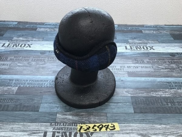 A.G. キッズ チェック ハリスツイード ニット 裏ボア 耳あて イヤーマフラー 青黒 です。
