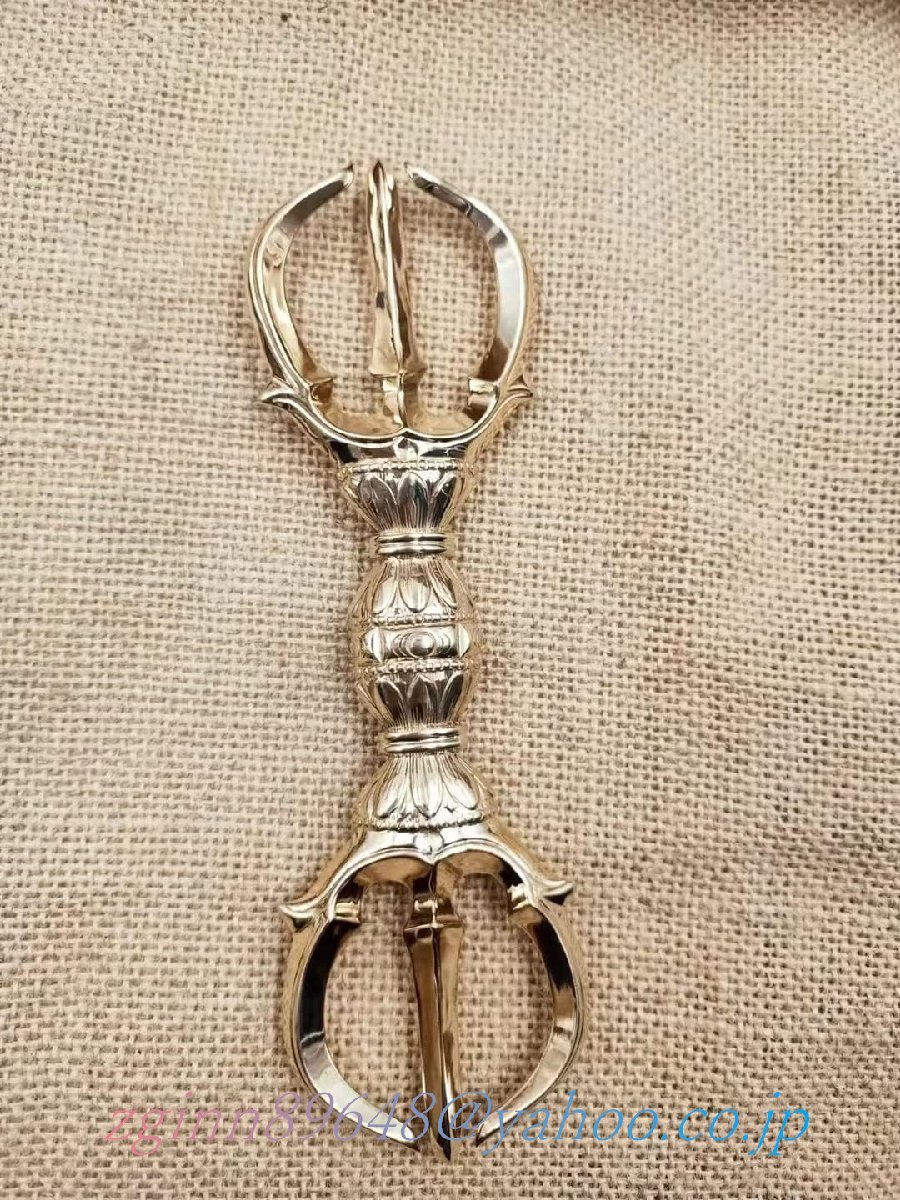 【密教法具 寺院用仏具】三鈷杵 大々型 長さ 16cm 手道具 金剛杵 真鍮仏具 密教で使われる仏具