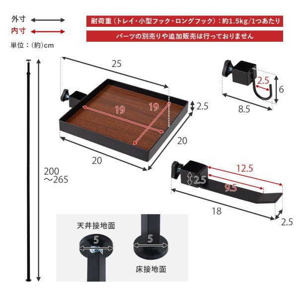 | サイズ | ■幅43cm×奥行43cm×高さ200-265cm |