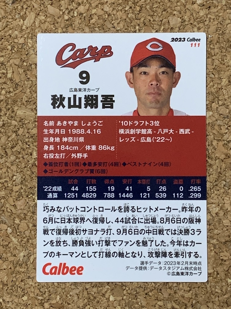 (2023プロ野球チップス 第2弾 レギュラーカード 111 広島東洋カープ 秋山 翔吾)