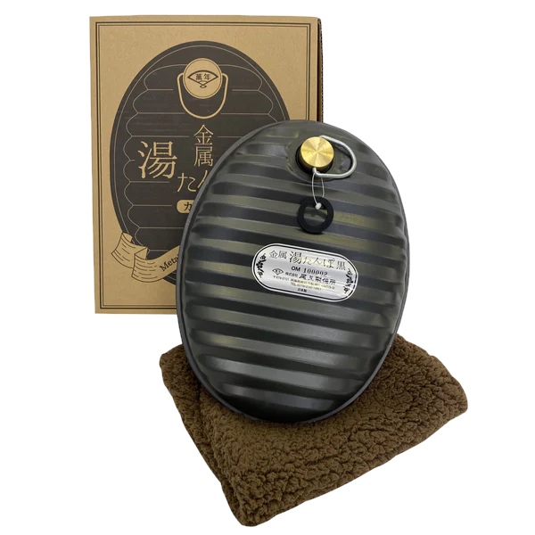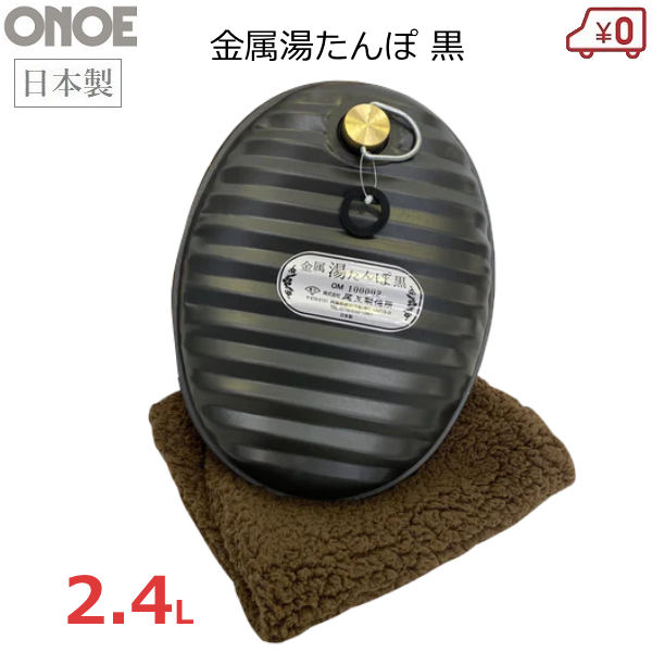 湯たんぽ 黒 2.4L カバー付き 袋付き 金属 トタン 日本製 おしゃれ キャンプ アウトドア 冬キャンプ MY-7207 尾上 萬年