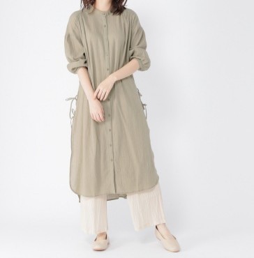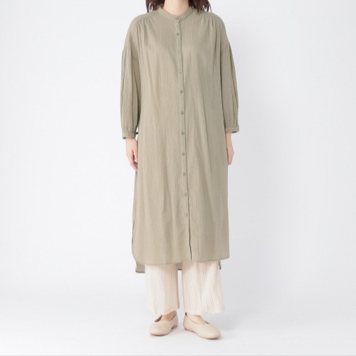 表面感のある素材感で羽織りやレイヤードにおすすめのワンピース。