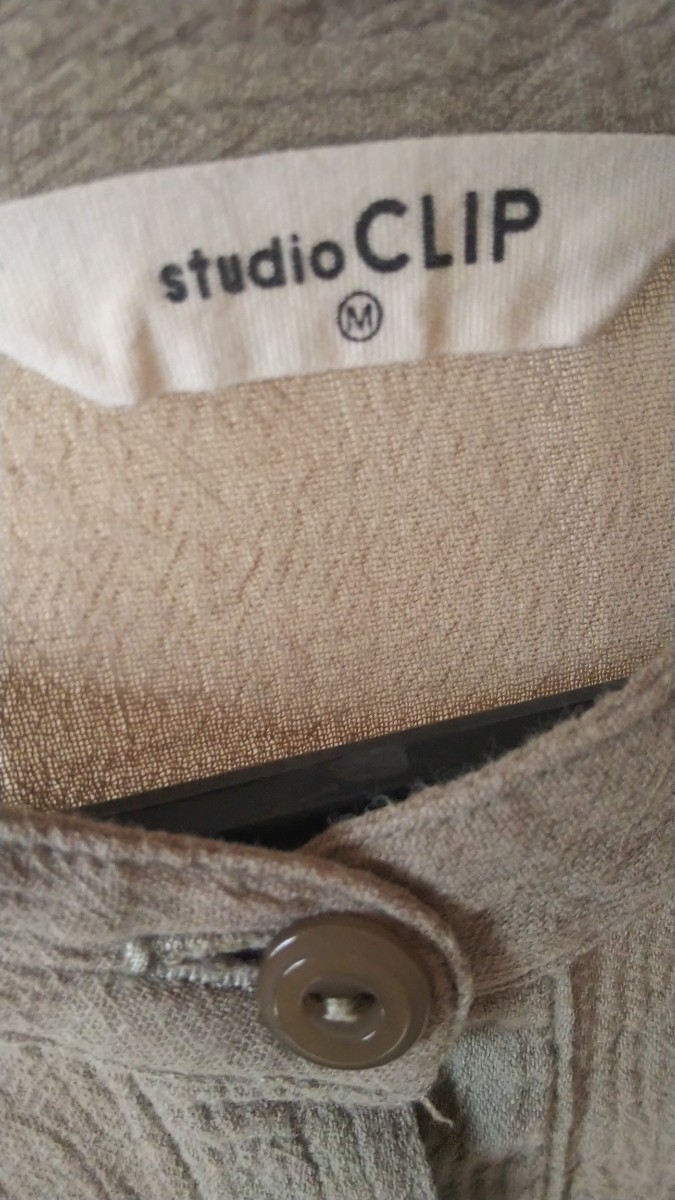 studio CLIP☆コットンサイドリボンシャツワンピース☆定価5489円☆カーキ☆スタジオクリップ☆M☆①