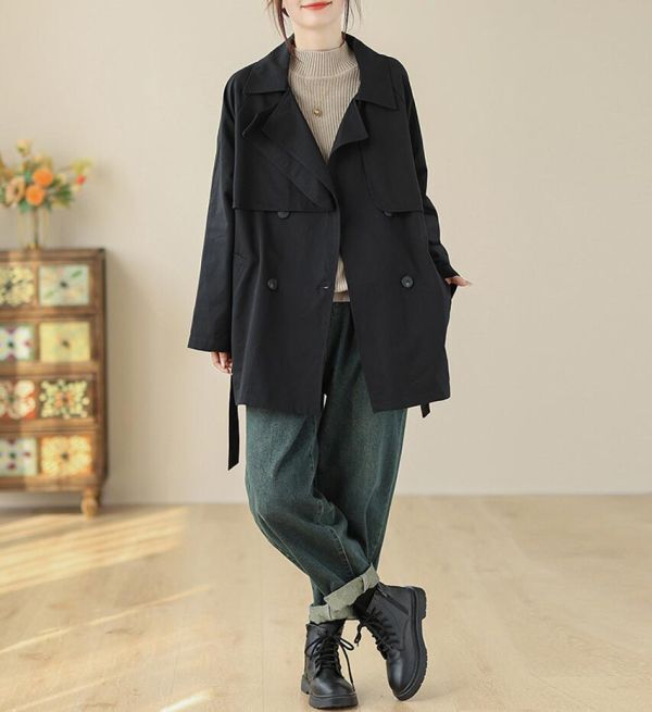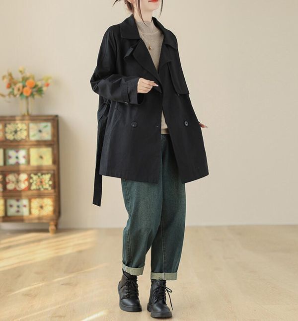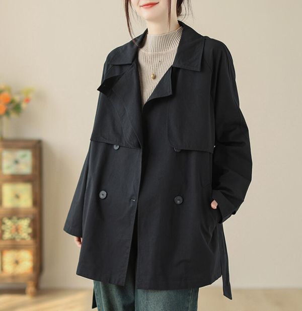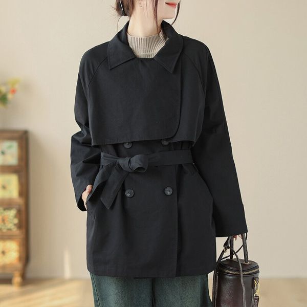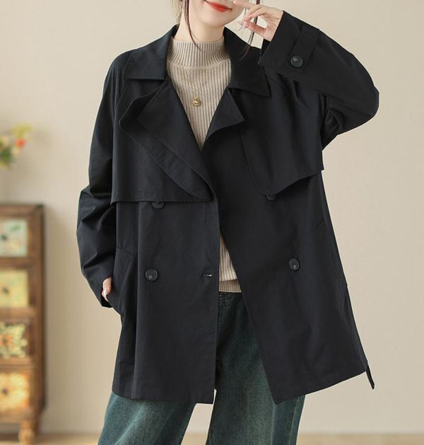 春新品 / カジュアル 復古 コート レディース きれいめ ロングコート アウター 小顔 ロング丈 スプリングコート 無地 ライトアウター / 黒